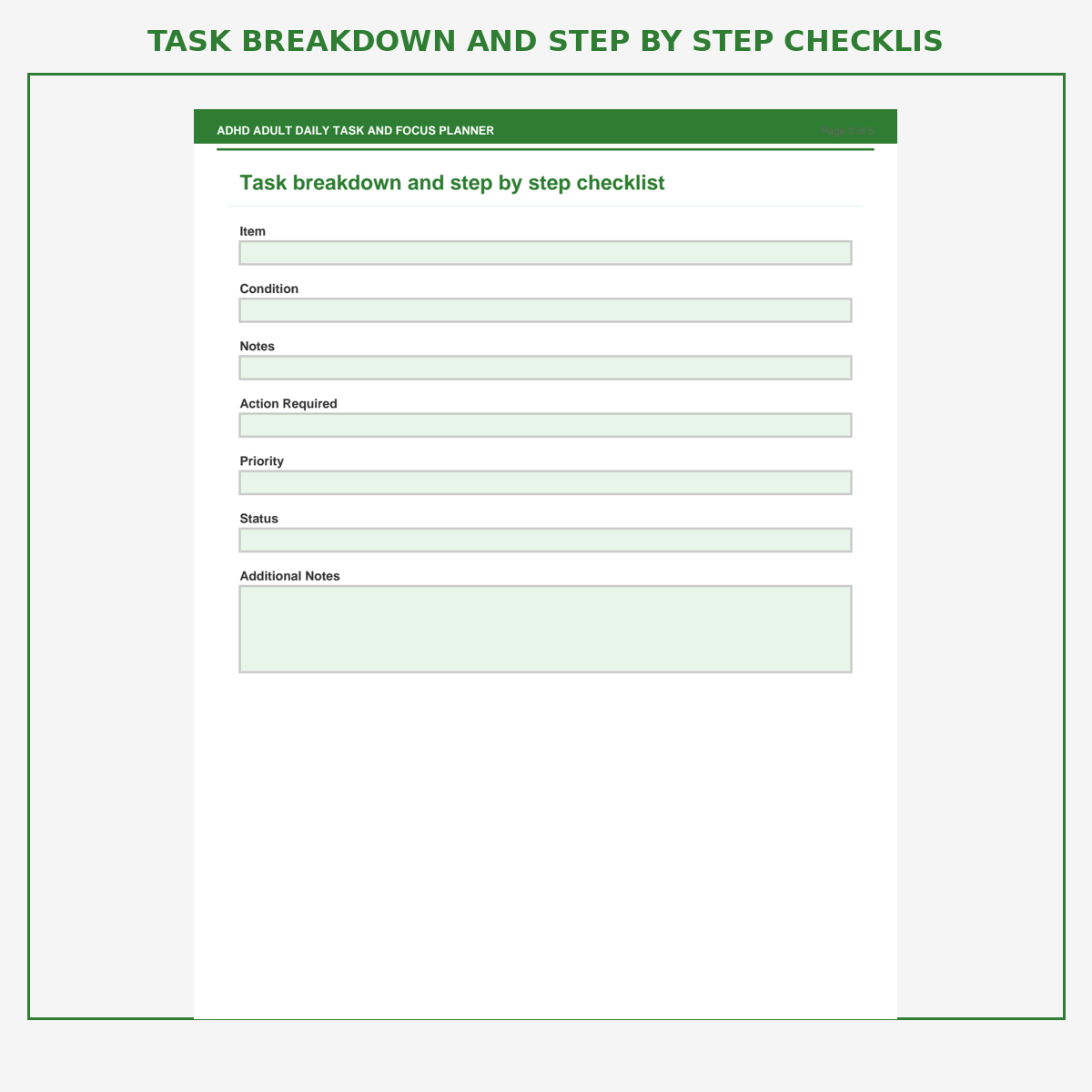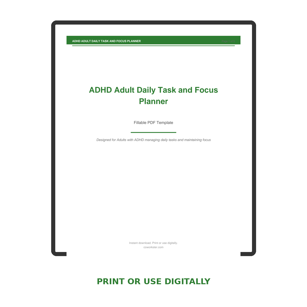 If you have been looking for a adhd adult daily task and focus planner that actually works the way you need it to, this is it. We designed this 5 page fillable PDF specifically for Adults with ADHD managing daily tasks and maintaining focus who want something practical, organized, and ready to use right away.