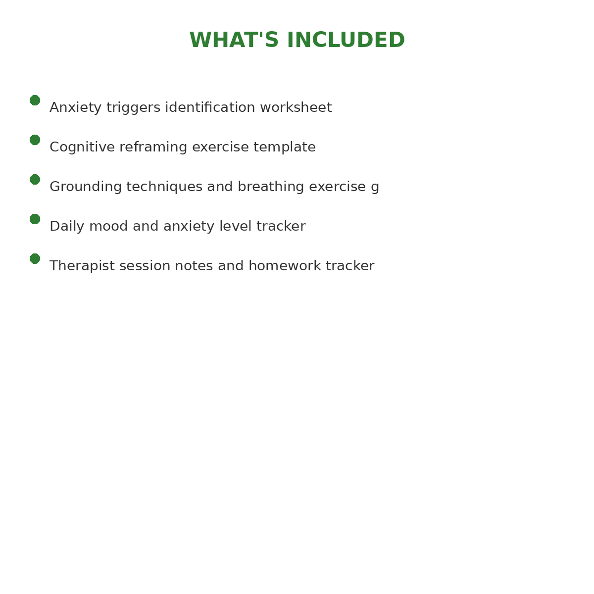 This template was built for People managing anxiety disorders with self guided exercises. Whether you are just getting started or have been at it for years, having a proper system saves you time and keeps everything in one place. No more scattered notes, forgotten details, or reinventing the wheel every time.