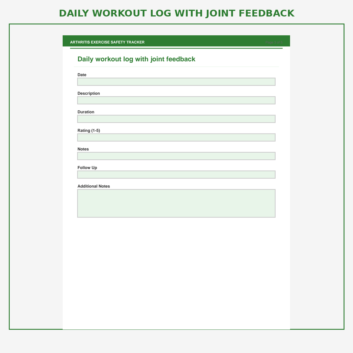 Daily workout log with joint feedback
