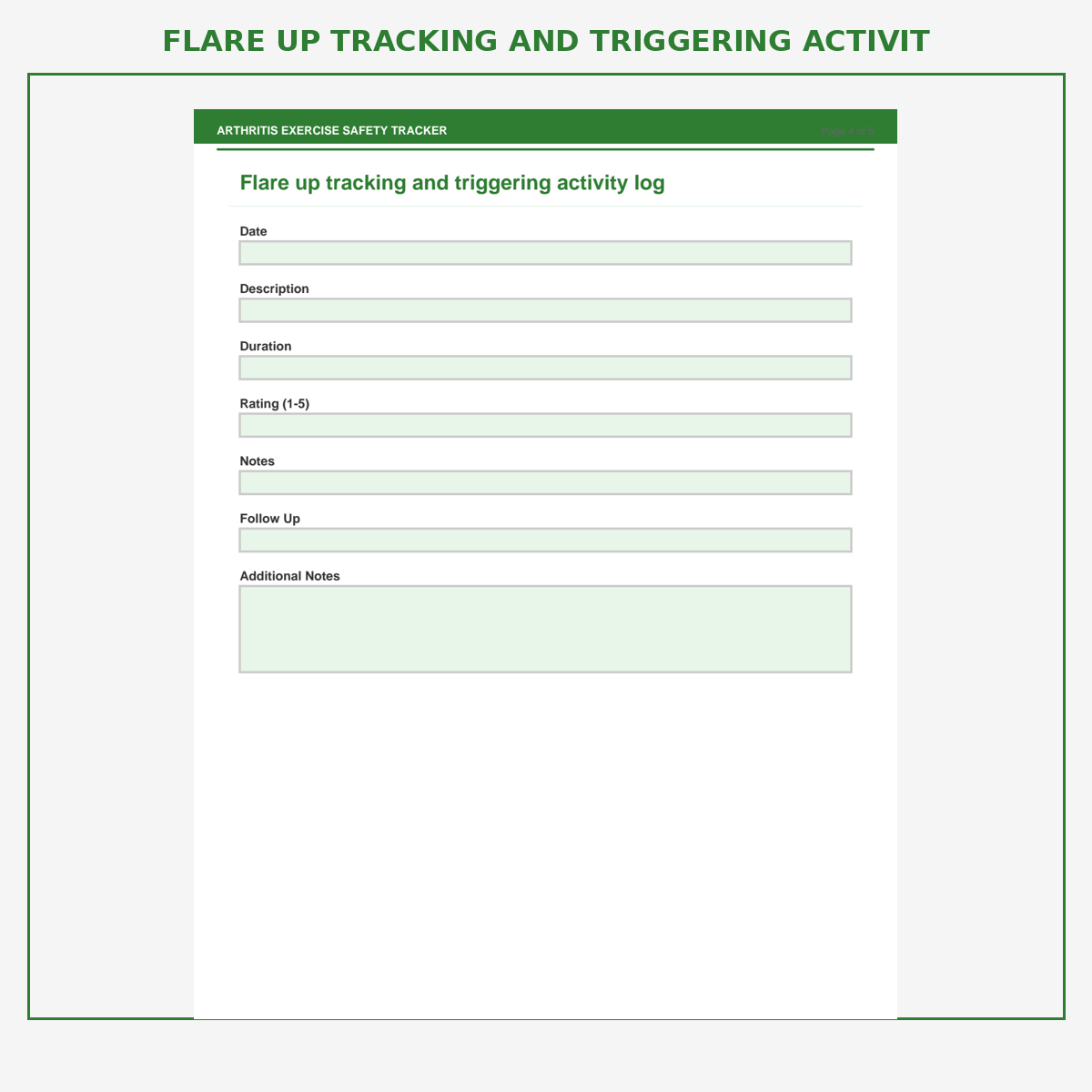 Flare up tracking and triggering activity log