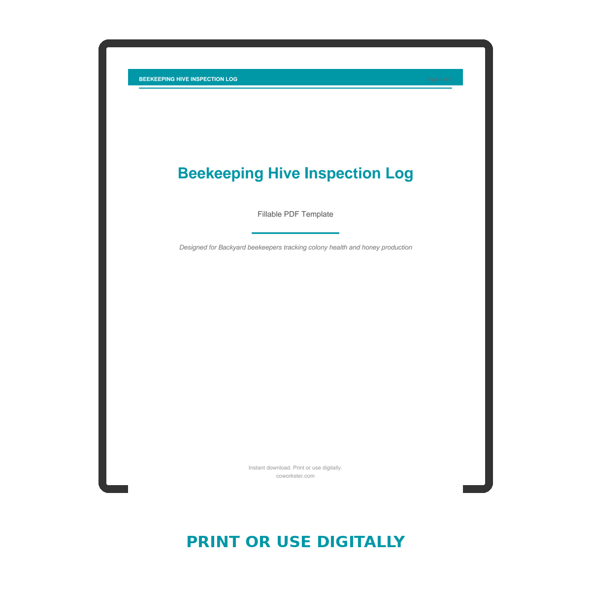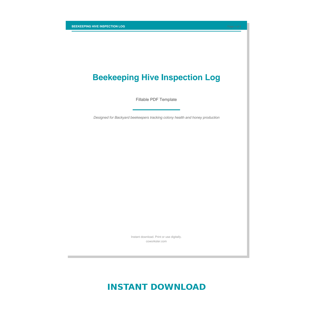 A 5 page fillable PDF template designed for Backyard beekeepers tracking colony health and honey production. Covers everything you need in one organized, professional document. Just open it, fill in the fields, and you are ready to go. Works on any device or print it out.