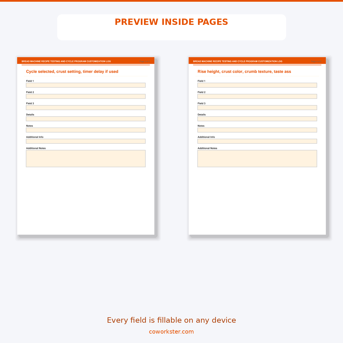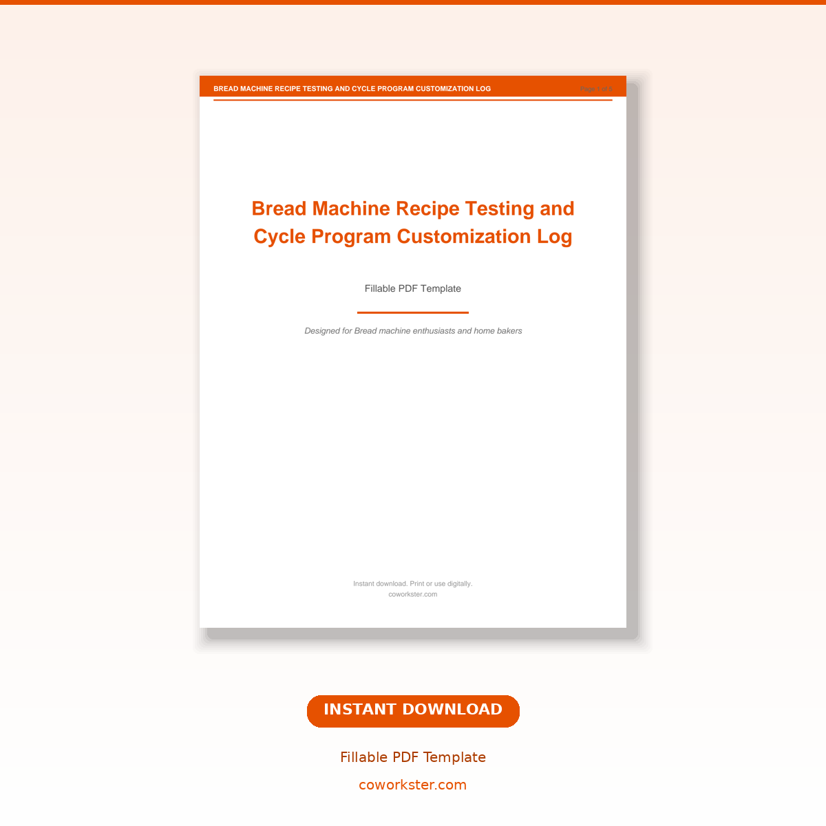 If you have been looking for a bread machine recipe testing and cycle program customization log that actually works the way you need it to, this is it. We designed this 5-page fillable PDF covering Machine Specification and Cycle Program Reference, Recipe Ingredient Measurement and Order Record, Cycle Selection and Custom Program Settings, Bake Results Assessment and Troubleshooting, and Favorite Recipe Collection and Modification Notes specifically for Bread machine enthusiasts and home bakers who want something practical, organized, and ready to use right away.