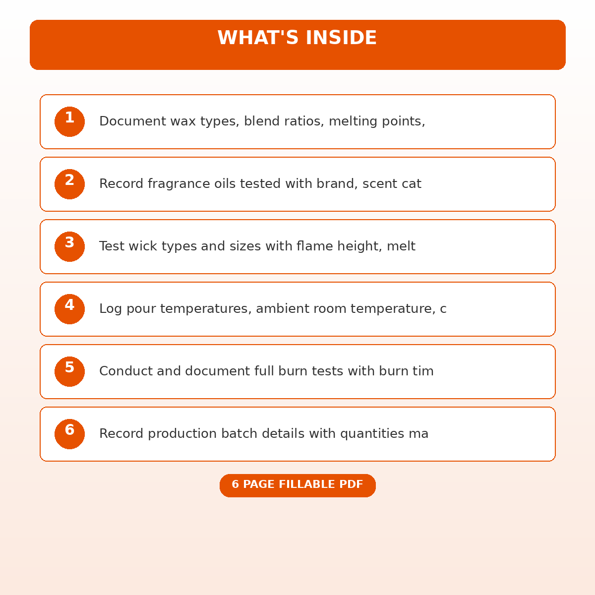 This template was built for Candle makers and chandlers testing formulations. Whether you are just getting started or have been at it for years, having a proper system saves you time and keeps everything in one place. No more scattered notes, forgotten details, or reinventing the wheel every time.