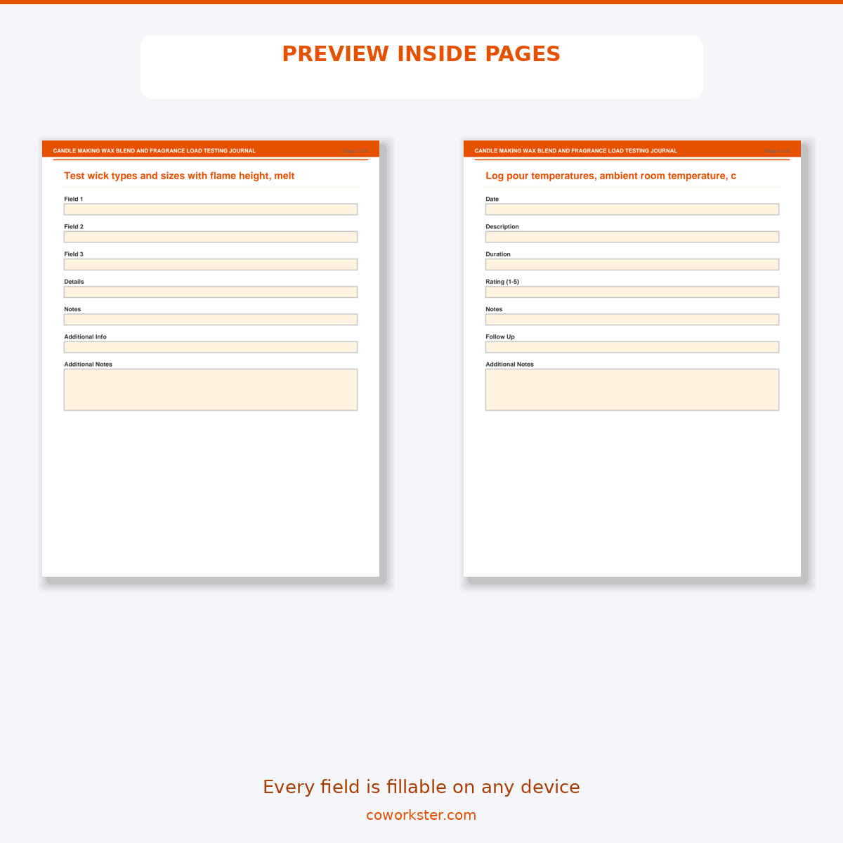 If you have been looking for a candle making wax blend and fragrance load testing journal that actually works the way you need it to, this is it. We designed this 6 page fillable PDF specifically for Candle makers and chandlers testing formulations who want something practical, organized, and ready to use right away.