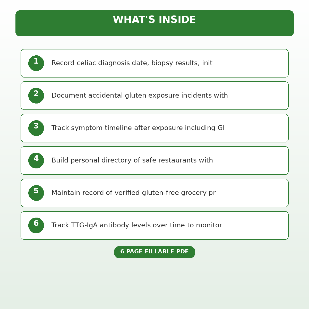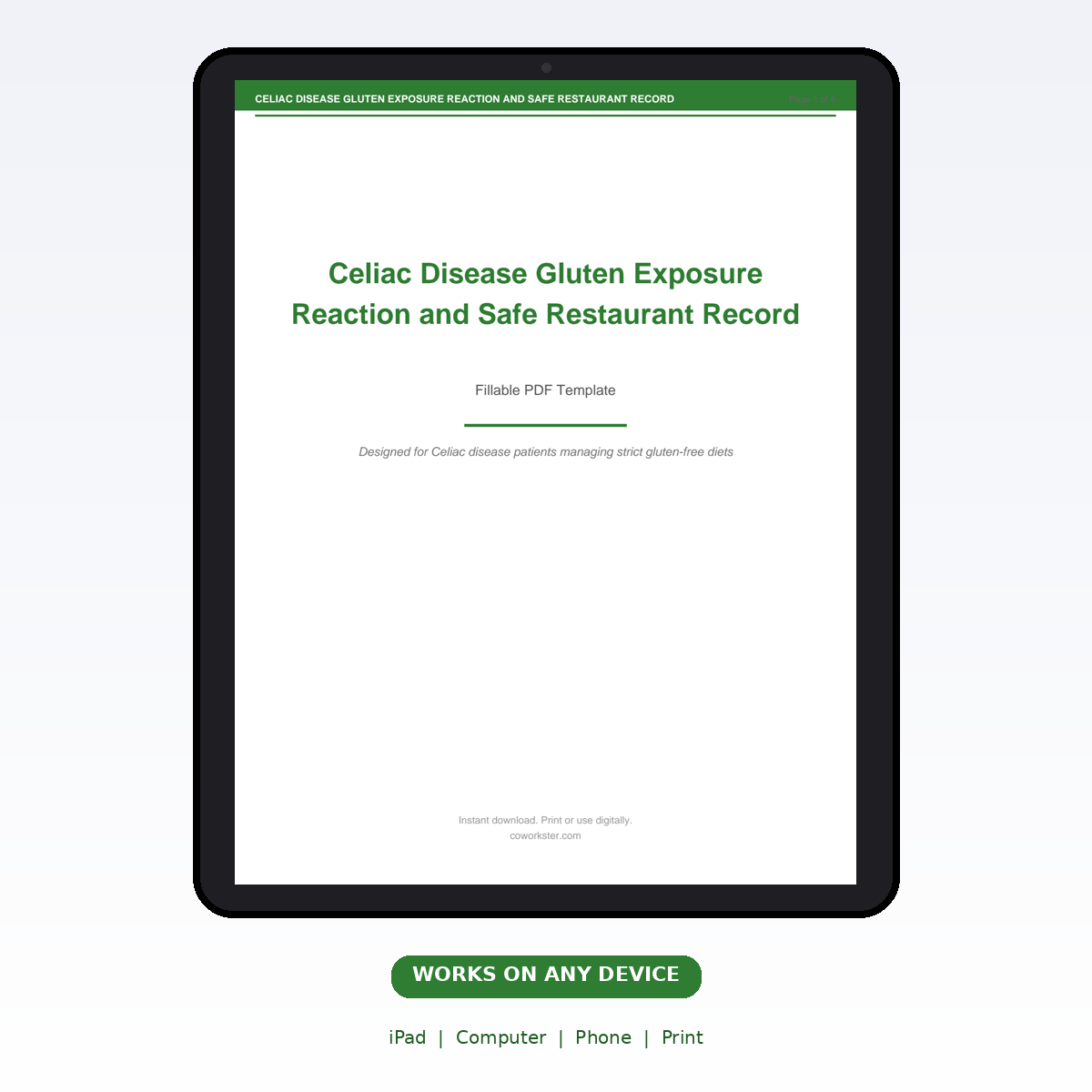 If you have been looking for a celiac disease gluten exposure reaction and safe restaurant record that actually works the way you need it to, this is it. We designed this 6 page fillable PDF specifically for Celiac disease patients managing strict gluten-free diets who want something practical, organized, and ready to use right away.