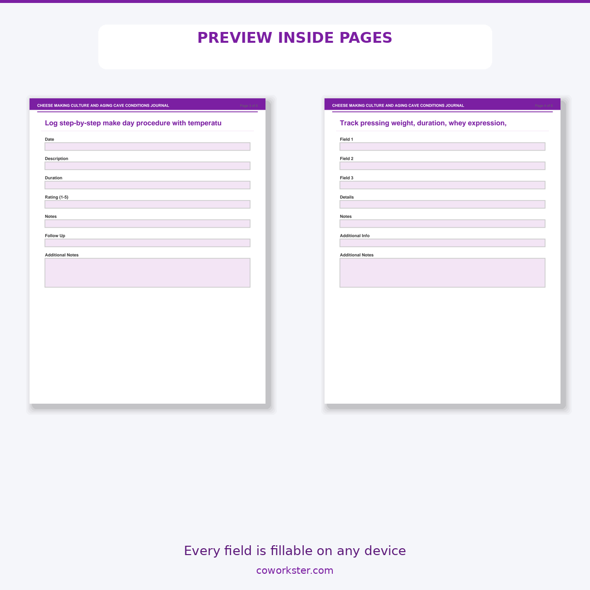 If you have been looking for a cheese making culture and aging cave conditions journal that actually works the way you need it to, this is it. We designed this 6 page fillable PDF specifically for Home cheese makers and artisan dairy enthusiasts who want something practical, organized, and ready to use right away.