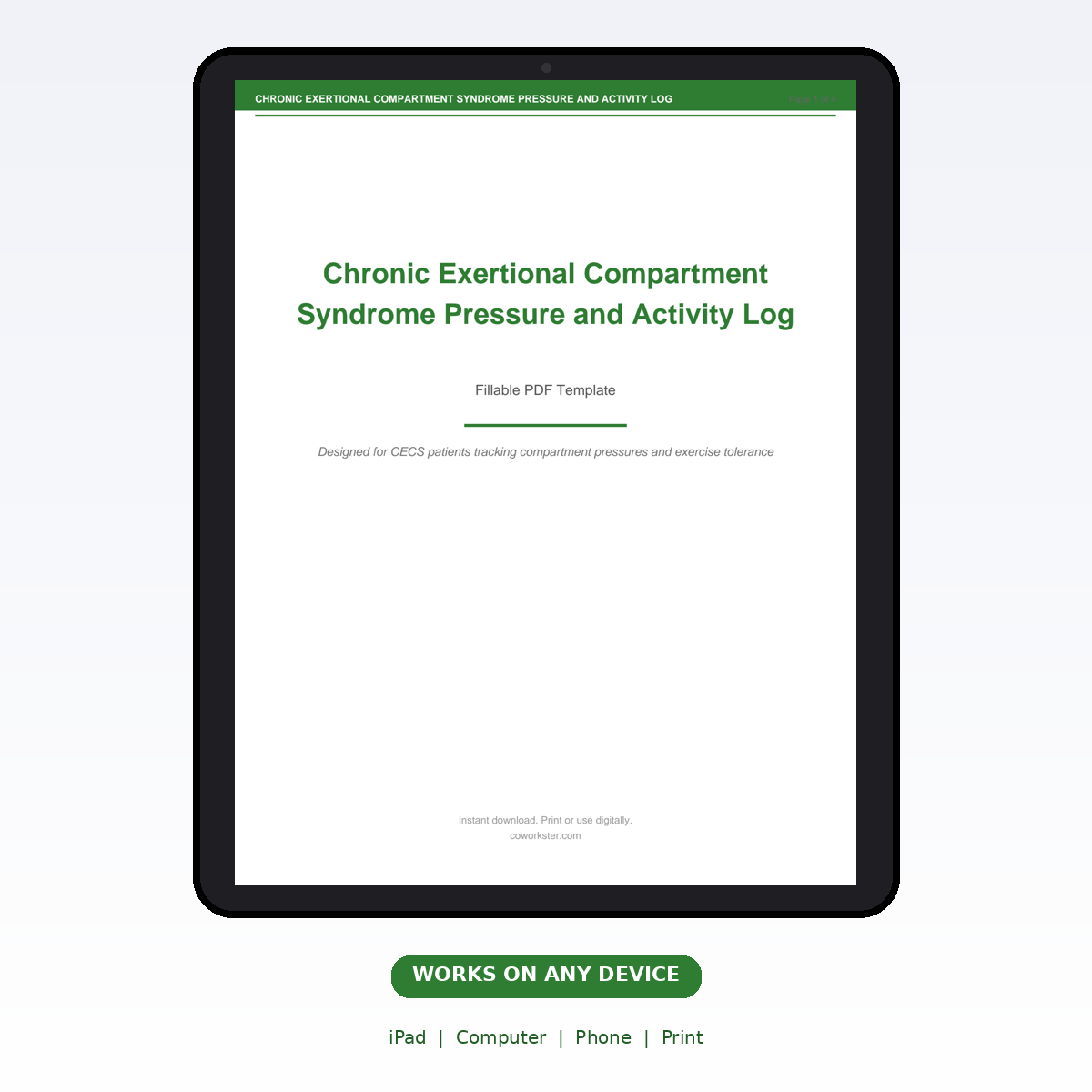If you have been looking for a chronic exertional compartment syndrome pressure and activity log that actually works the way you need it to, this is it. We designed this 4 page fillable PDF specifically for CECS patients tracking compartment pressures and exercise tolerance who want something practical, organized, and ready to use right away.