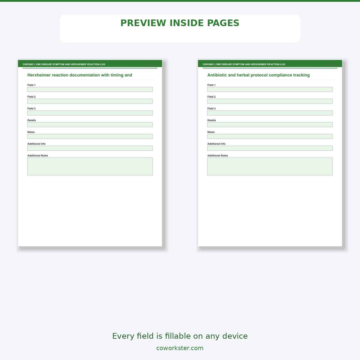 If you have been looking for a chronic lyme disease symptom and herxheimer reaction log that actually works the way you need it to, this is it. We designed this 5 page fillable PDF specifically for Chronic Lyme patients tracking symptom cycles and treatment reactions who want something practical, organized, and ready to use right away.