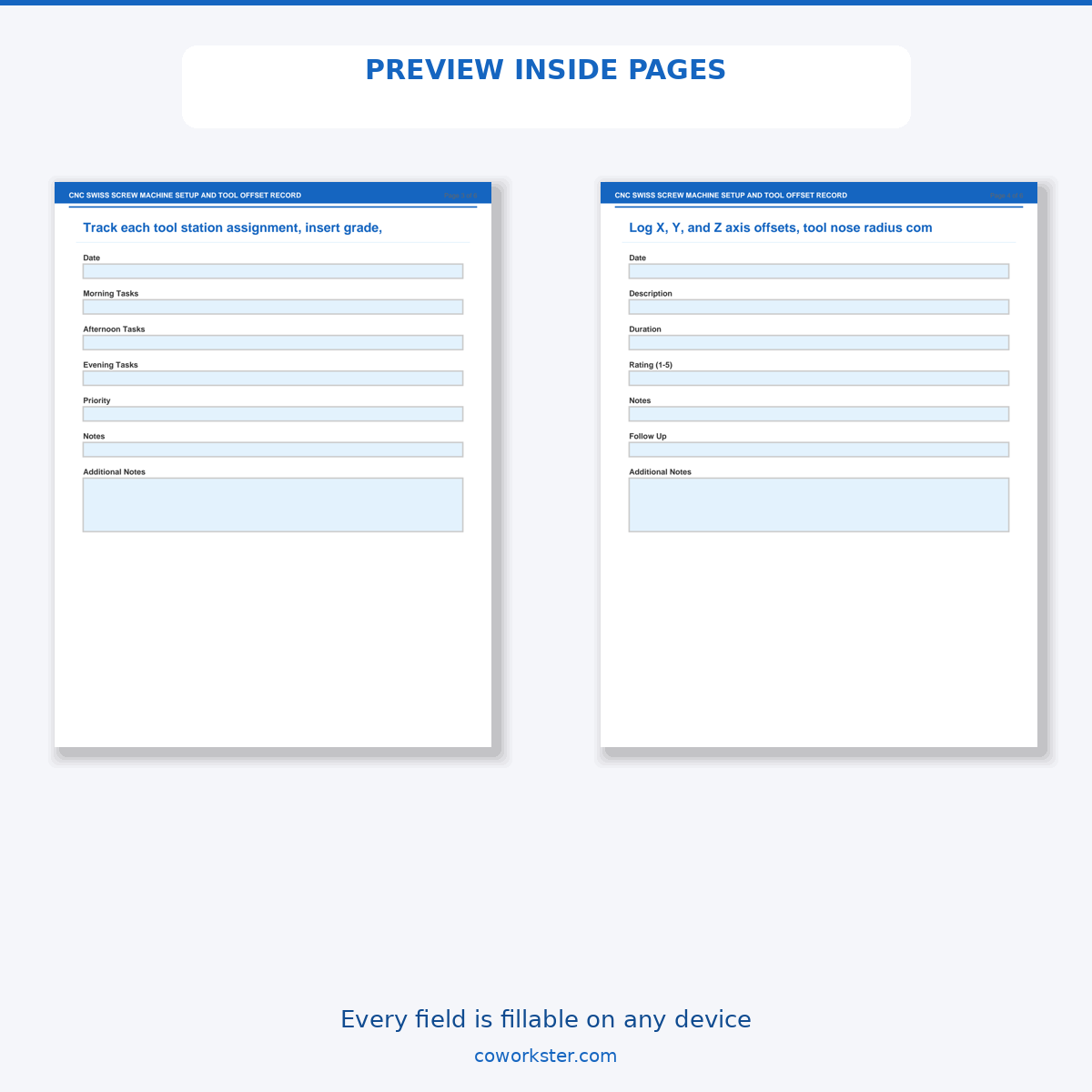 This template was built for CNC Swiss screw machine operators and setup technicians. Whether you are just getting started or have been at it for years, having a proper system saves you time and keeps everything in one place. No more scattered notes, forgotten details, or reinventing the wheel every time.
