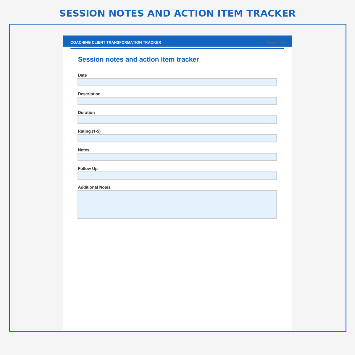 A 5 page fillable PDF template designed for Life coaches and wellness coaches tracking client progress and results. Covers everything you need in one organized, professional document. Just open it, fill in the fields, and you are ready to go. Works on any device or print it out.