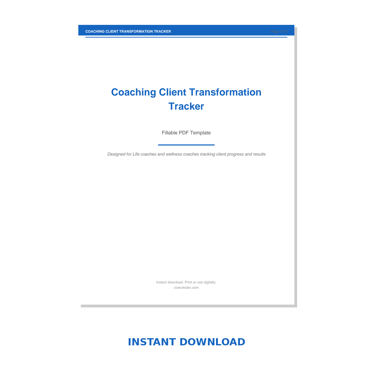 If you have been looking for a coaching client transformation tracker that actually works the way you need it to, this is it. We designed this 5 page fillable PDF specifically for Life coaches and wellness coaches tracking client progress and results who want something practical, organized, and ready to use right away.