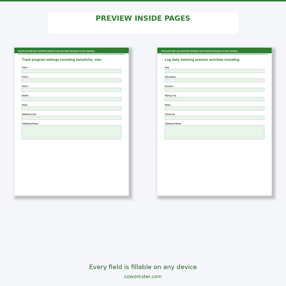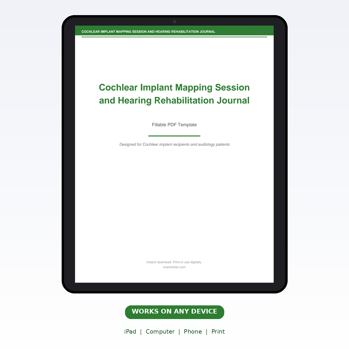 If you have been looking for a cochlear implant mapping session and hearing rehabilitation journal that actually works the way you need it to, this is it. We designed this 6 page fillable PDF specifically for Cochlear implant recipients and audiology patients who want something practical, organized, and ready to use right away.