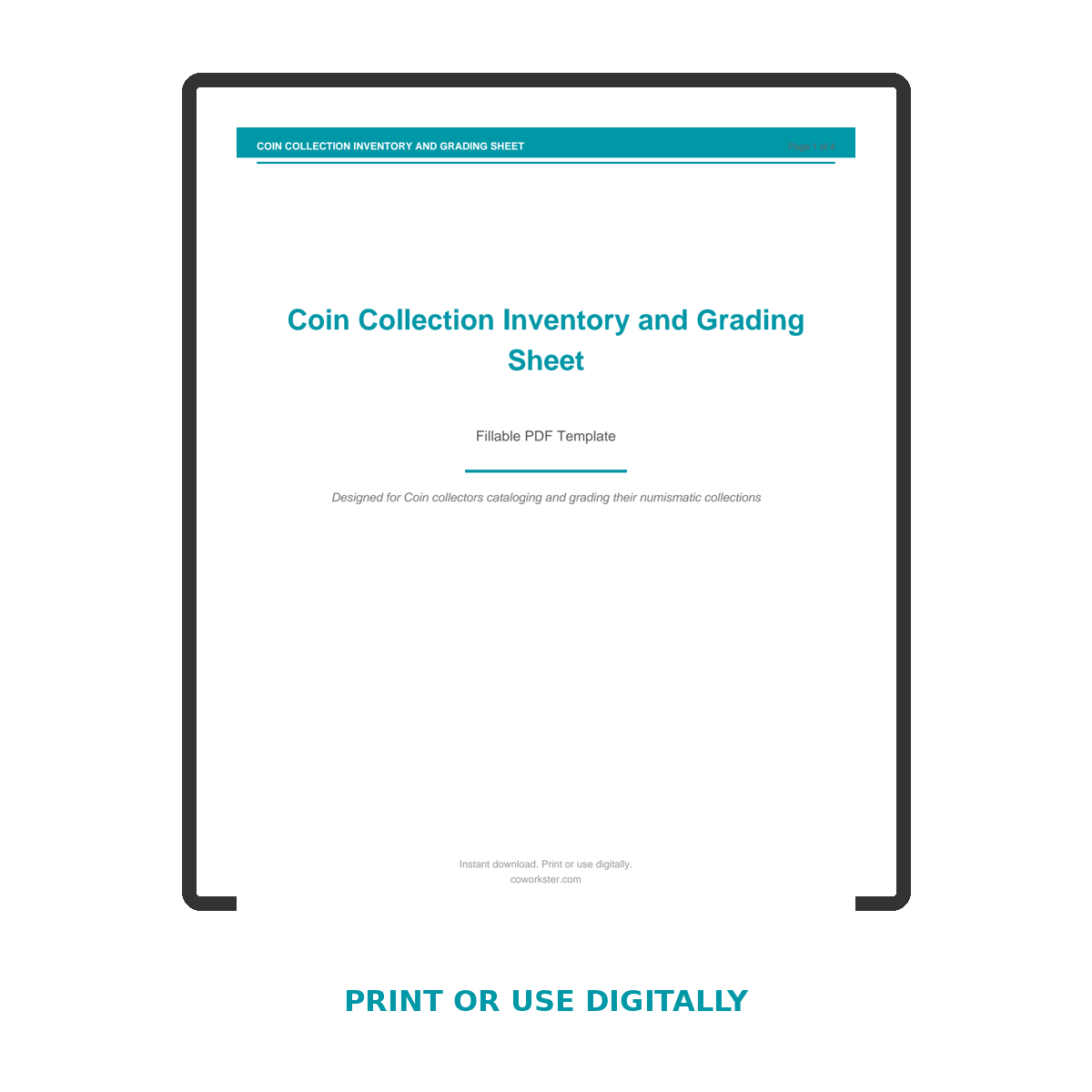 If you have been looking for a coin collection inventory and grading sheet that actually works the way you need it to, this is it. We designed this 4 page fillable PDF specifically for Coin collectors cataloging and grading their numismatic collections who want something practical, organized, and ready to use right away.