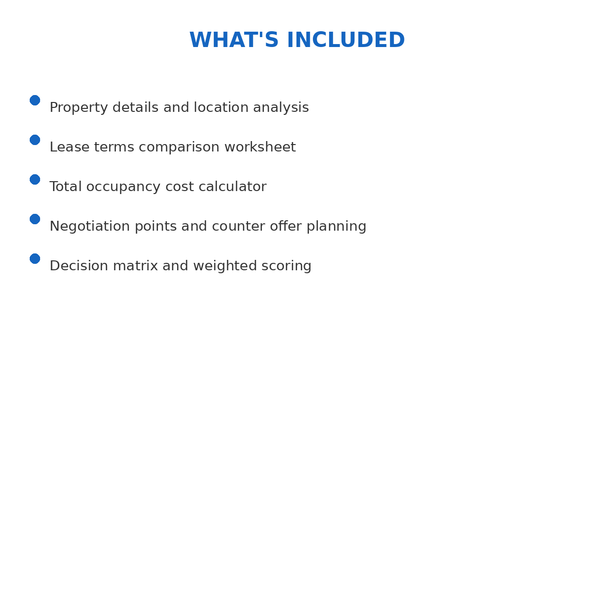 This template was built for Business owners comparing commercial lease options. Whether you are just getting started or have been at it for years, having a proper system saves you time and keeps everything in one place. No more scattered notes, forgotten details, or reinventing the wheel every time.