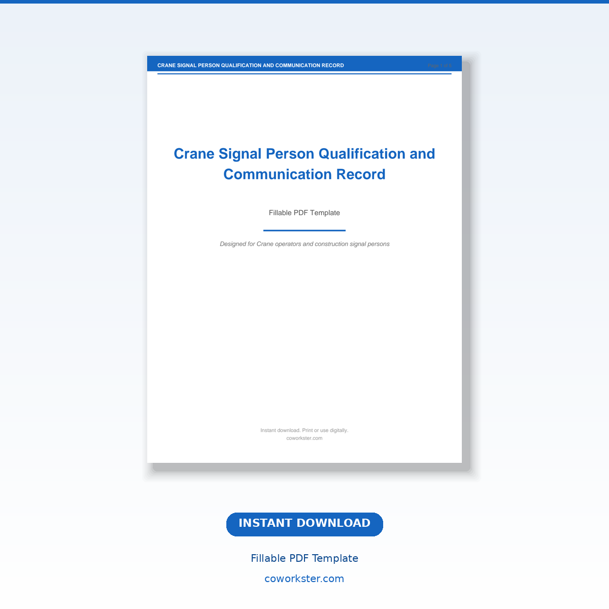 If you have been looking for a crane signal person qualification and communication record that actually works the way you need it to, this is it. We designed this 5 page fillable PDF specifically for Crane operators and construction signal persons who want something practical, organized, and ready to use right away.