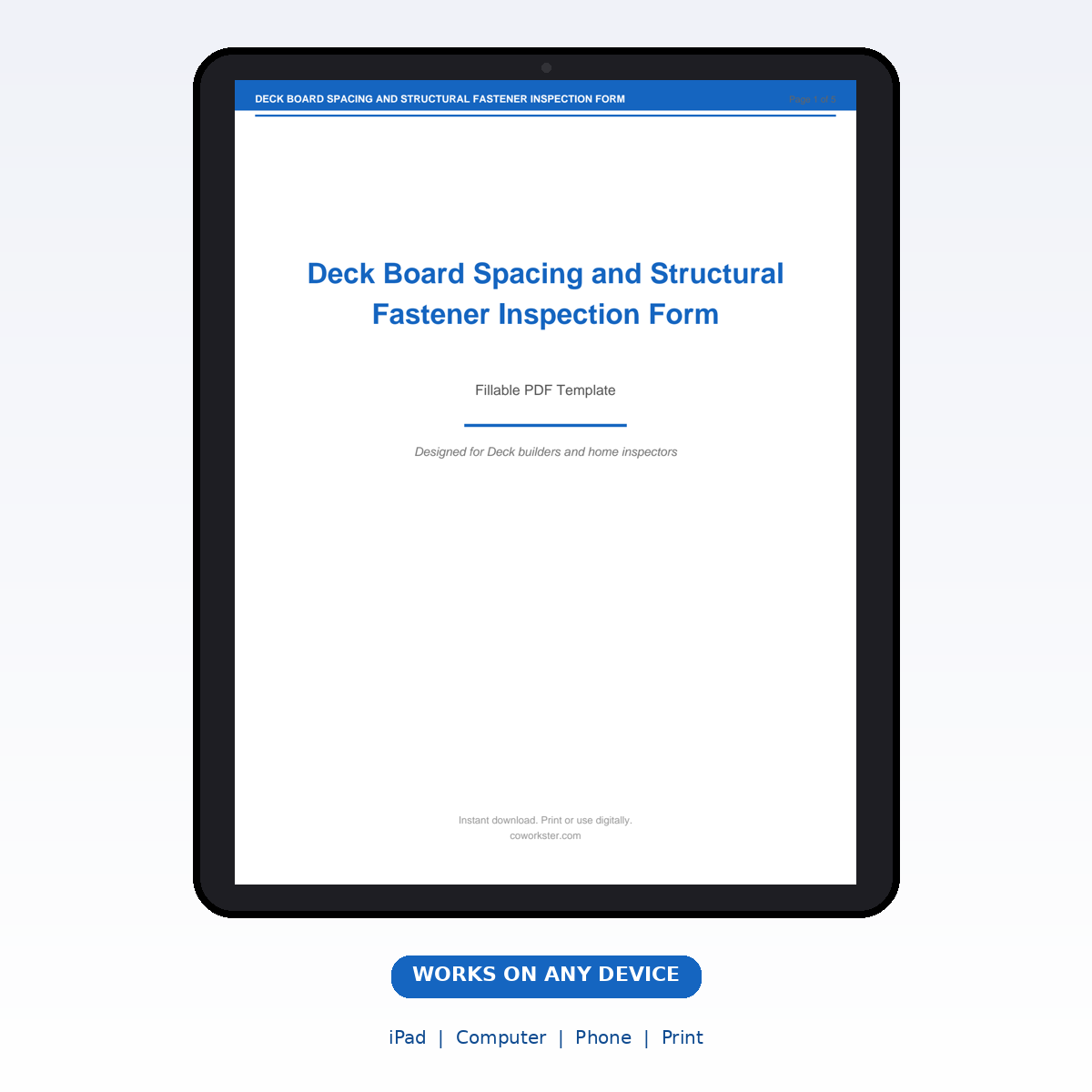 Be the first to review “Deck Board Spacing and Structural Fastener Inspection Form”