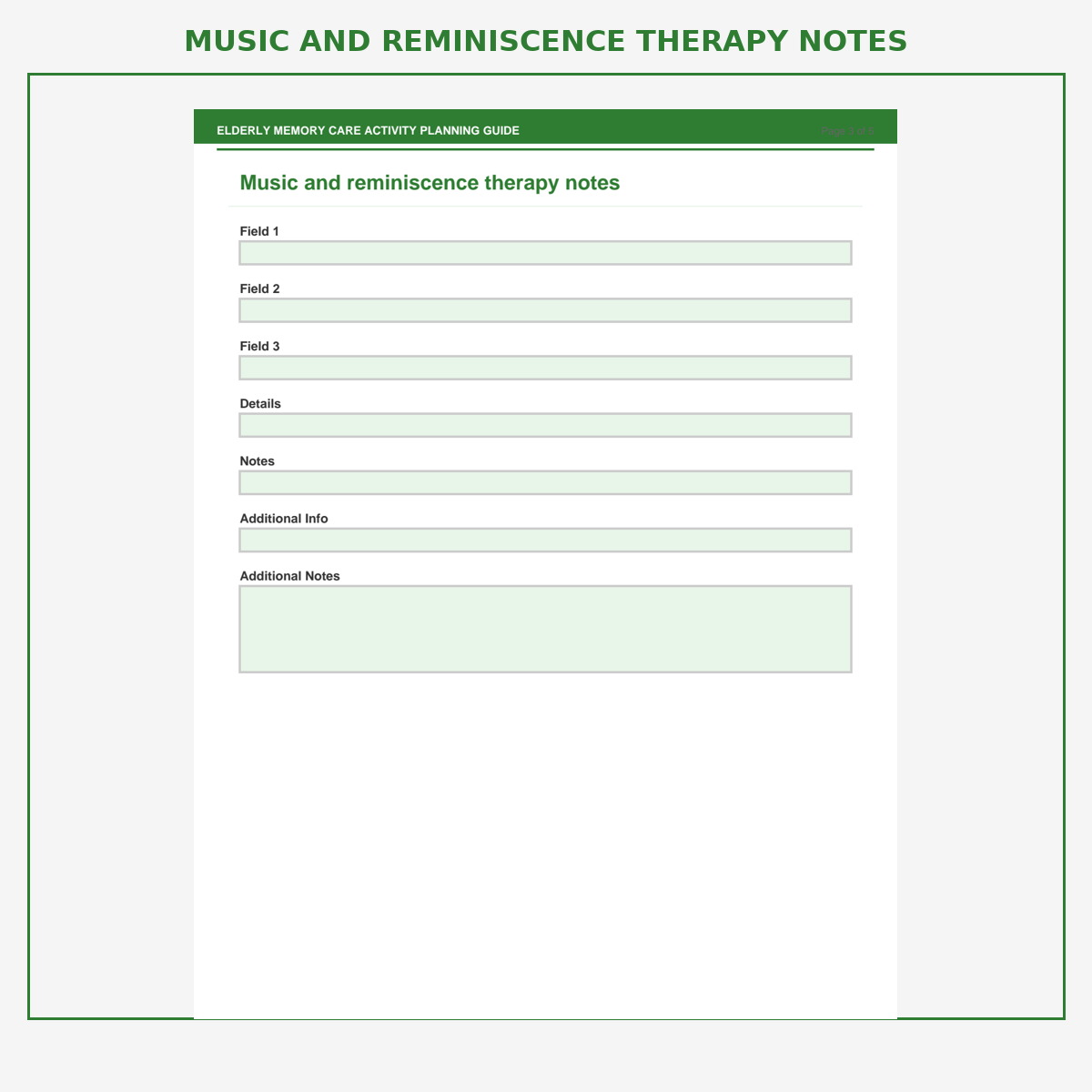 Music and reminiscence therapy notes