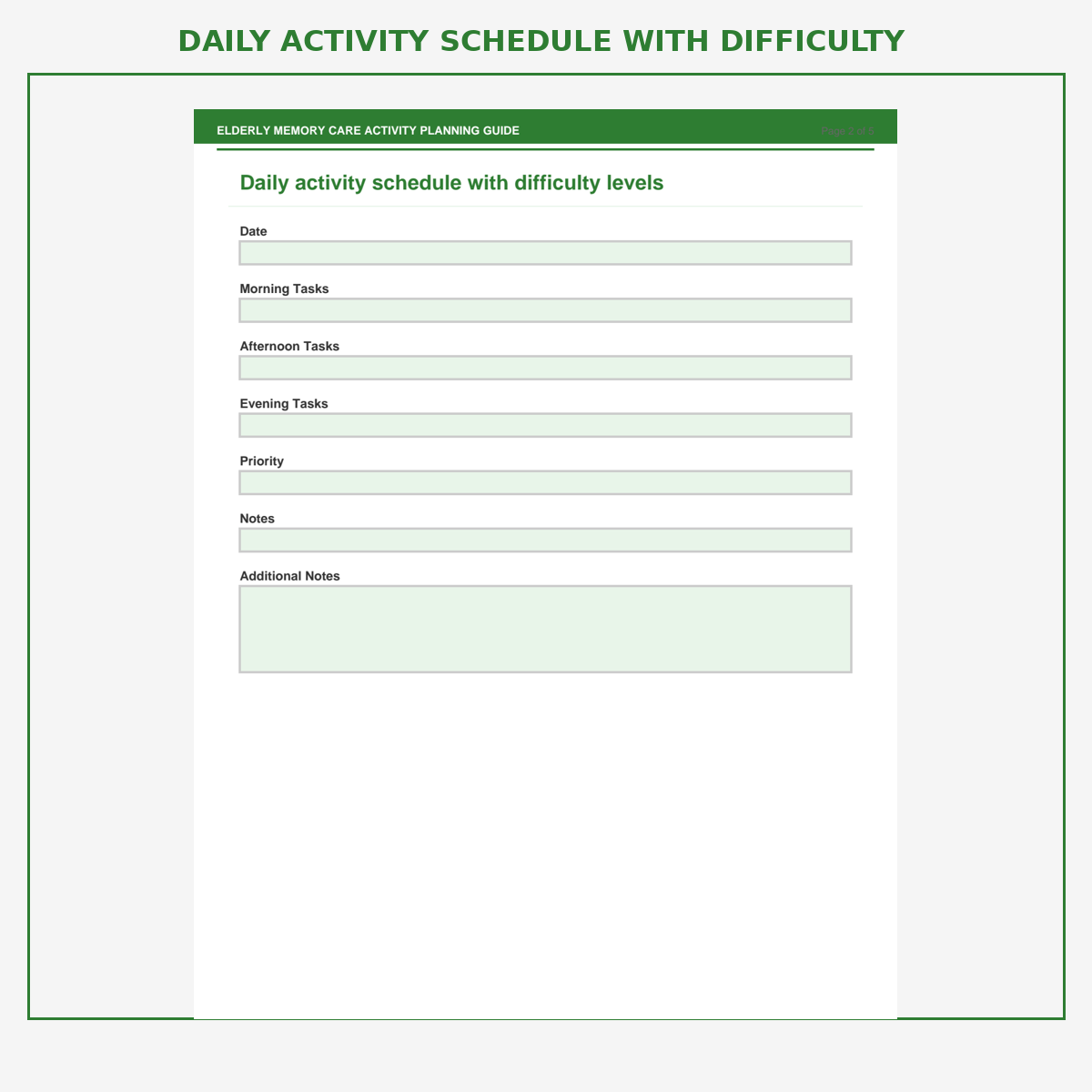 Daily activity schedule with difficulty levels