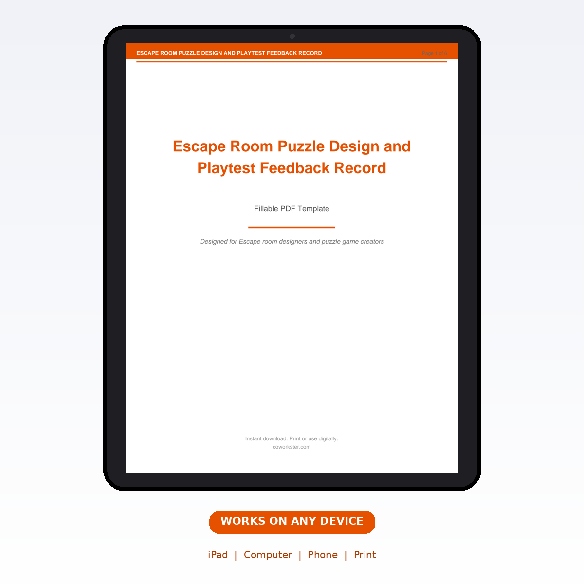If you have been looking for a escape room puzzle design and playtest feedback record that actually works the way you need it to, this is it. We designed this 6 page fillable PDF specifically for Escape room designers and puzzle game creators who want something practical, organized, and ready to use right away.