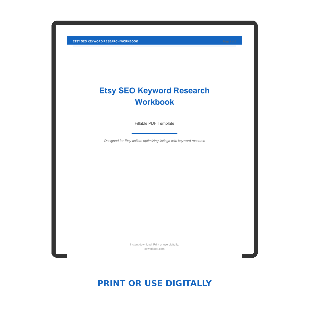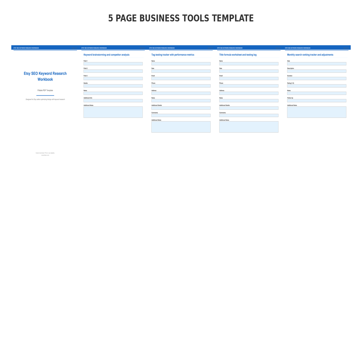 If you have been looking for a etsy seo keyword research workbook that actually works the way you need it to, this is it. We designed this 5 page fillable PDF specifically for Etsy sellers optimizing listings with keyword research who want something practical, organized, and ready to use right away.