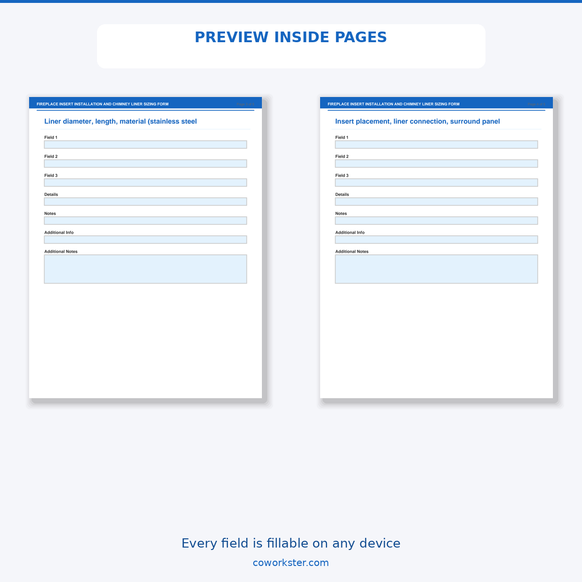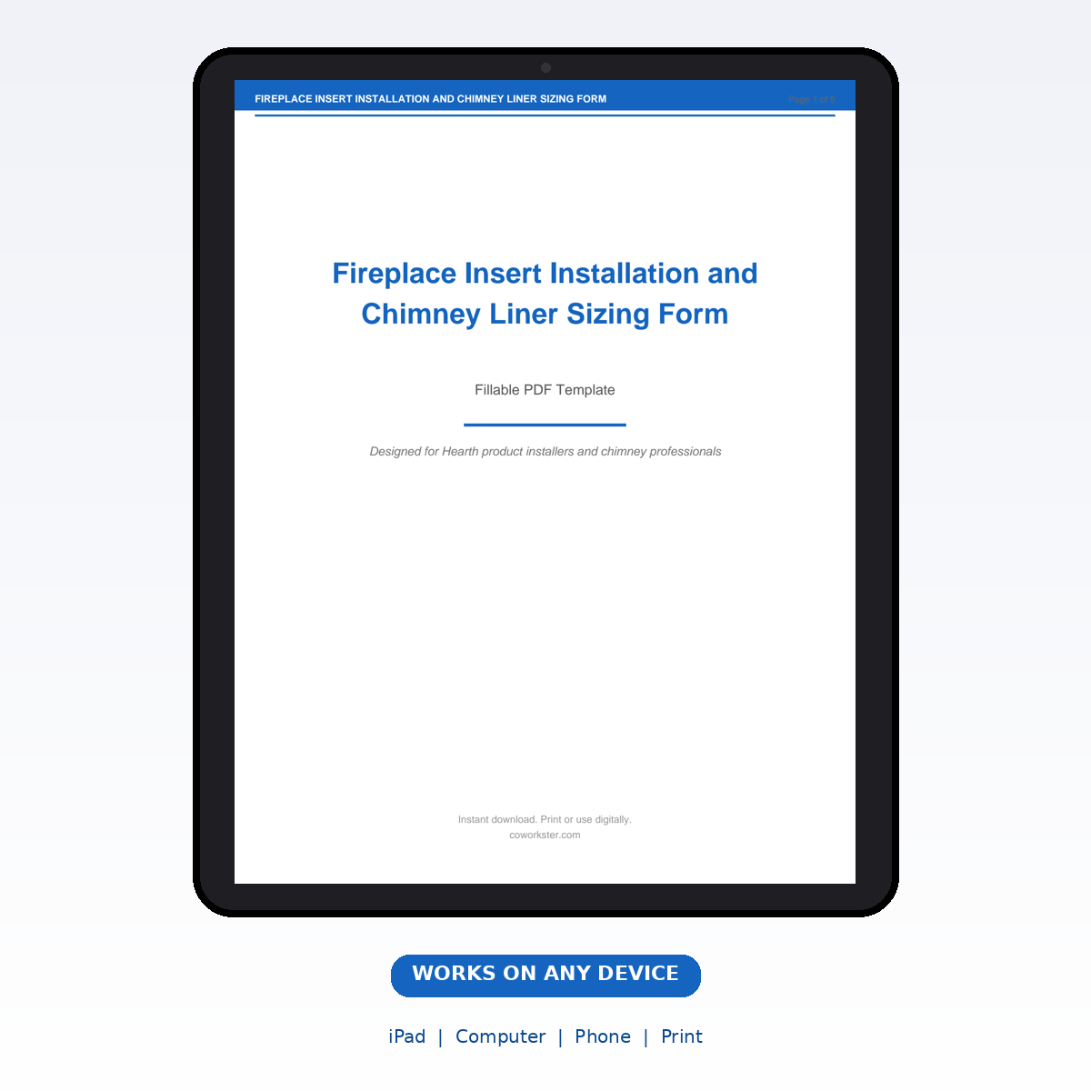If you have been looking for a fireplace insert installation and chimney liner sizing form that actually works the way you need it to, this is it. We designed this 5 page fillable PDF specifically for Hearth product installers and chimney professionals who want something practical, organized, and ready to use right away.