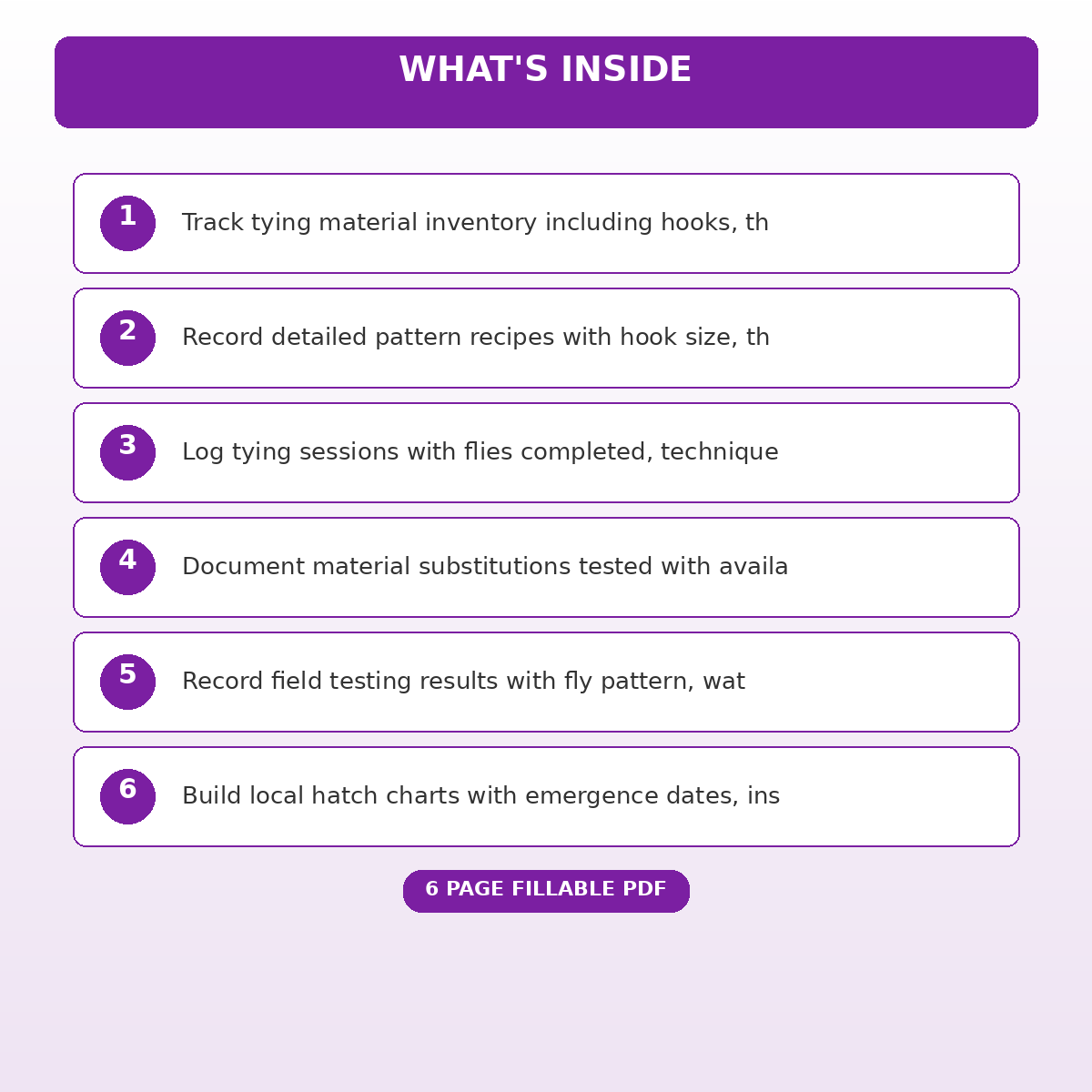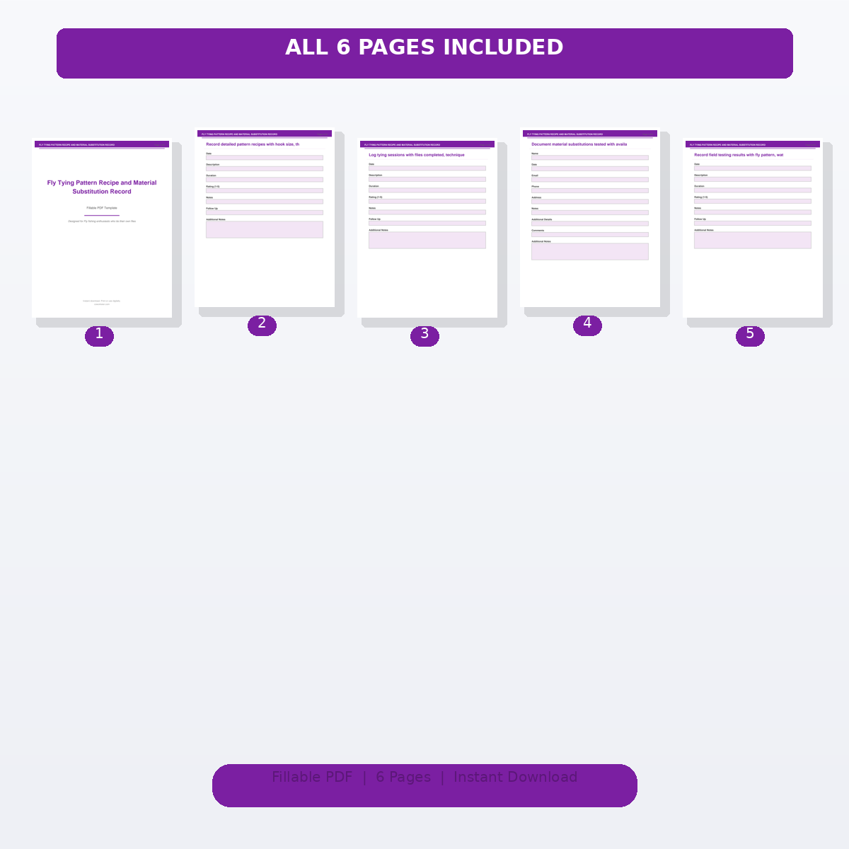 If you have been looking for a fly tying pattern recipe and material substitution record that actually works the way you need it to, this is it. We designed this 6 page fillable PDF specifically for Fly fishing enthusiasts who tie their own flies who want something practical, organized, and ready to use right away.
