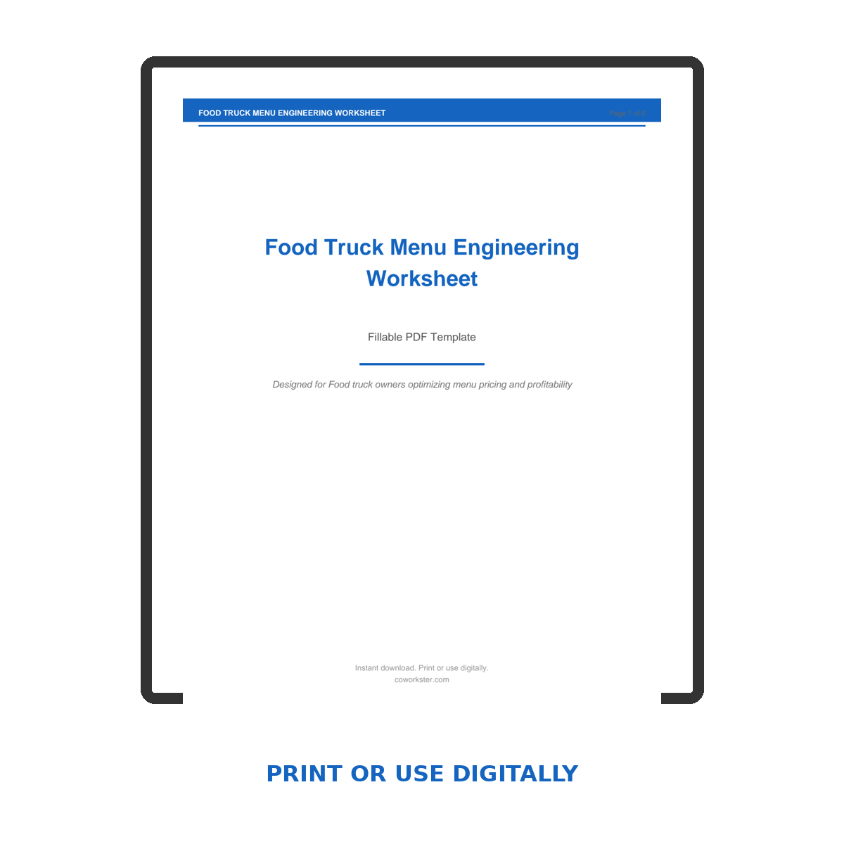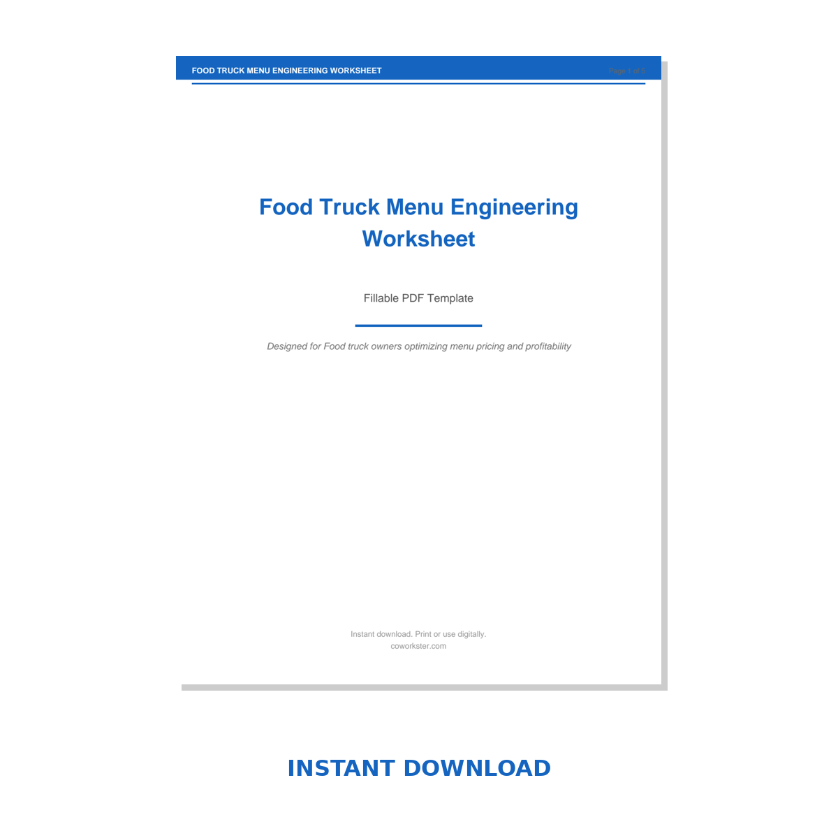 If you have been looking for a food truck menu engineering worksheet that actually works the way you need it to, this is it. We designed this 5 page fillable PDF specifically for Food truck owners optimizing menu pricing and profitability who want something practical, organized, and ready to use right away.