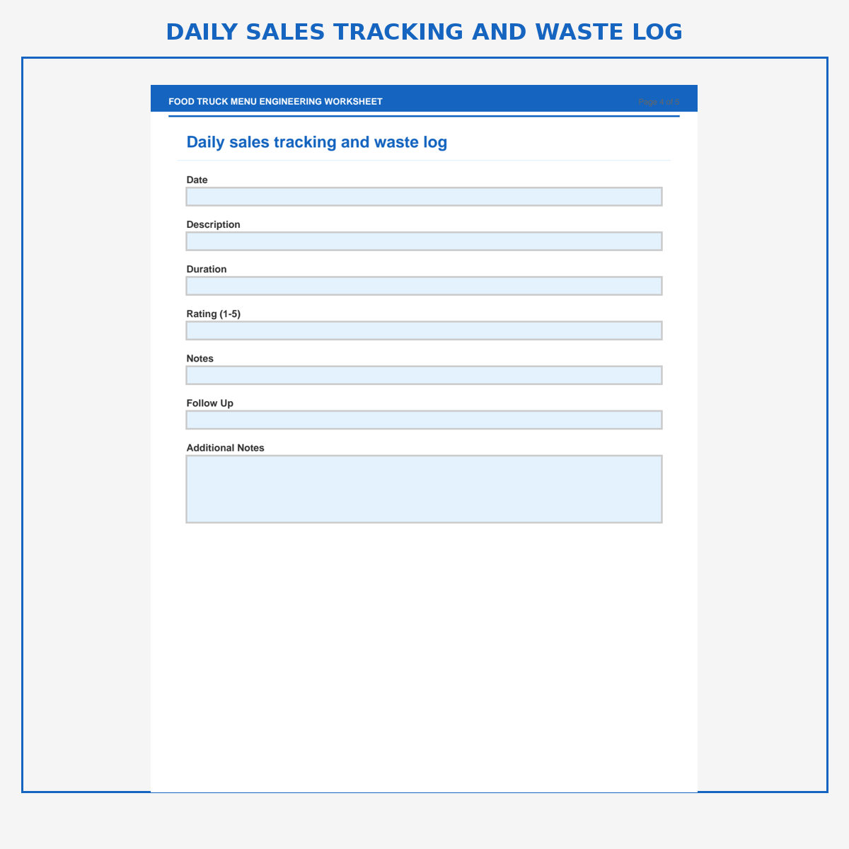 Daily sales tracking and waste log