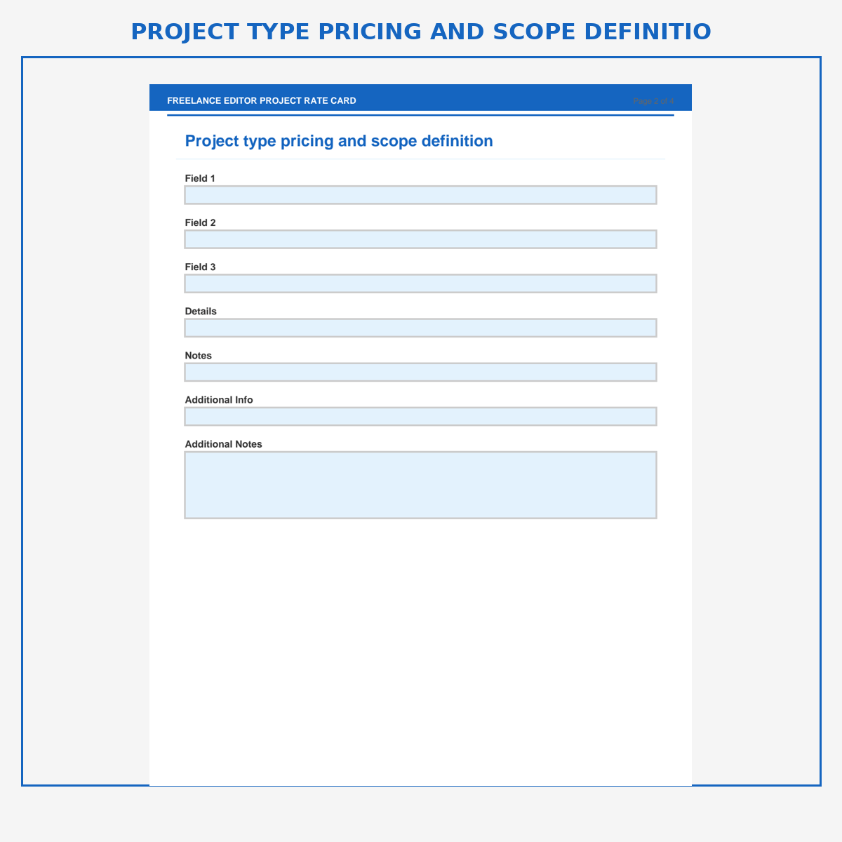 Project type pricing and scope definition