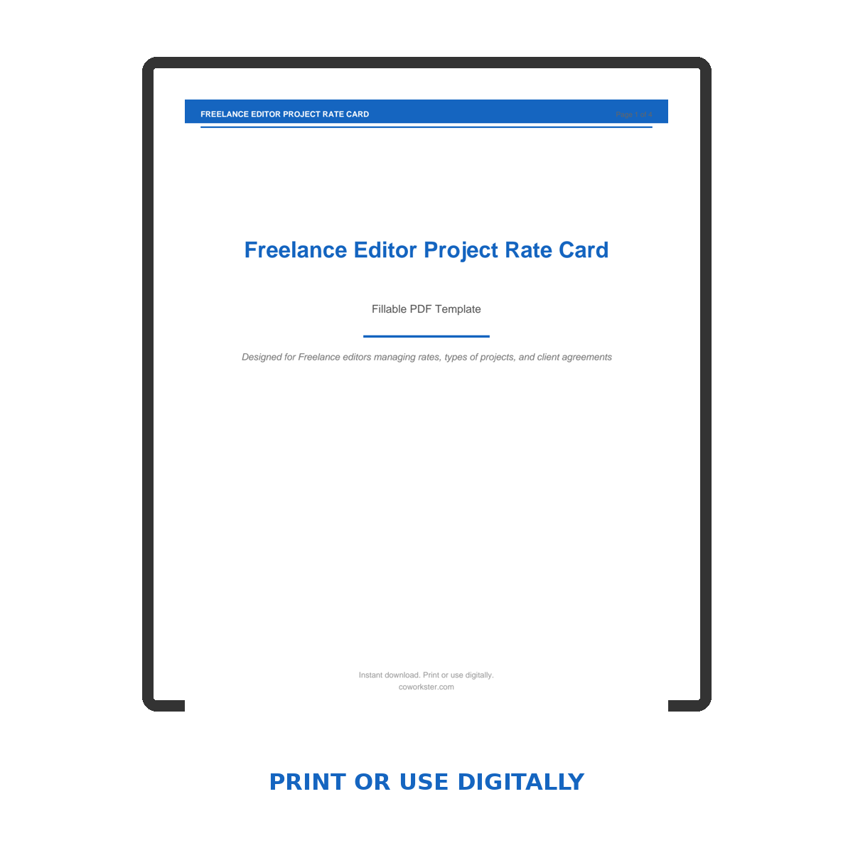 If you have been looking for a freelance editor project rate card that actually works the way you need it to, this is it. We designed this 4 page fillable PDF specifically for Freelance editors managing rates, types of projects, and client agreements who want something practical, organized, and ready to use right away.