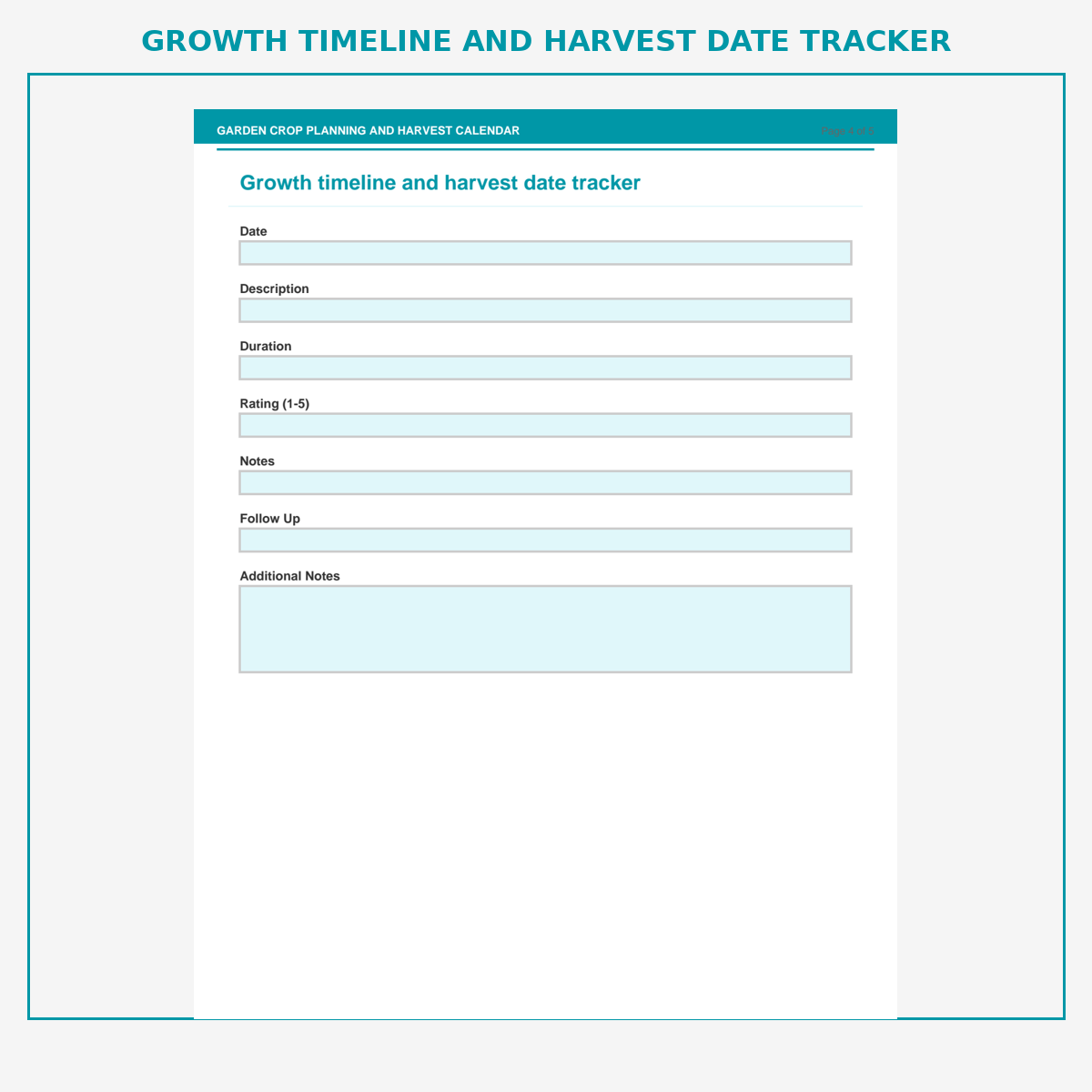 Growth timeline and harvest date tracker