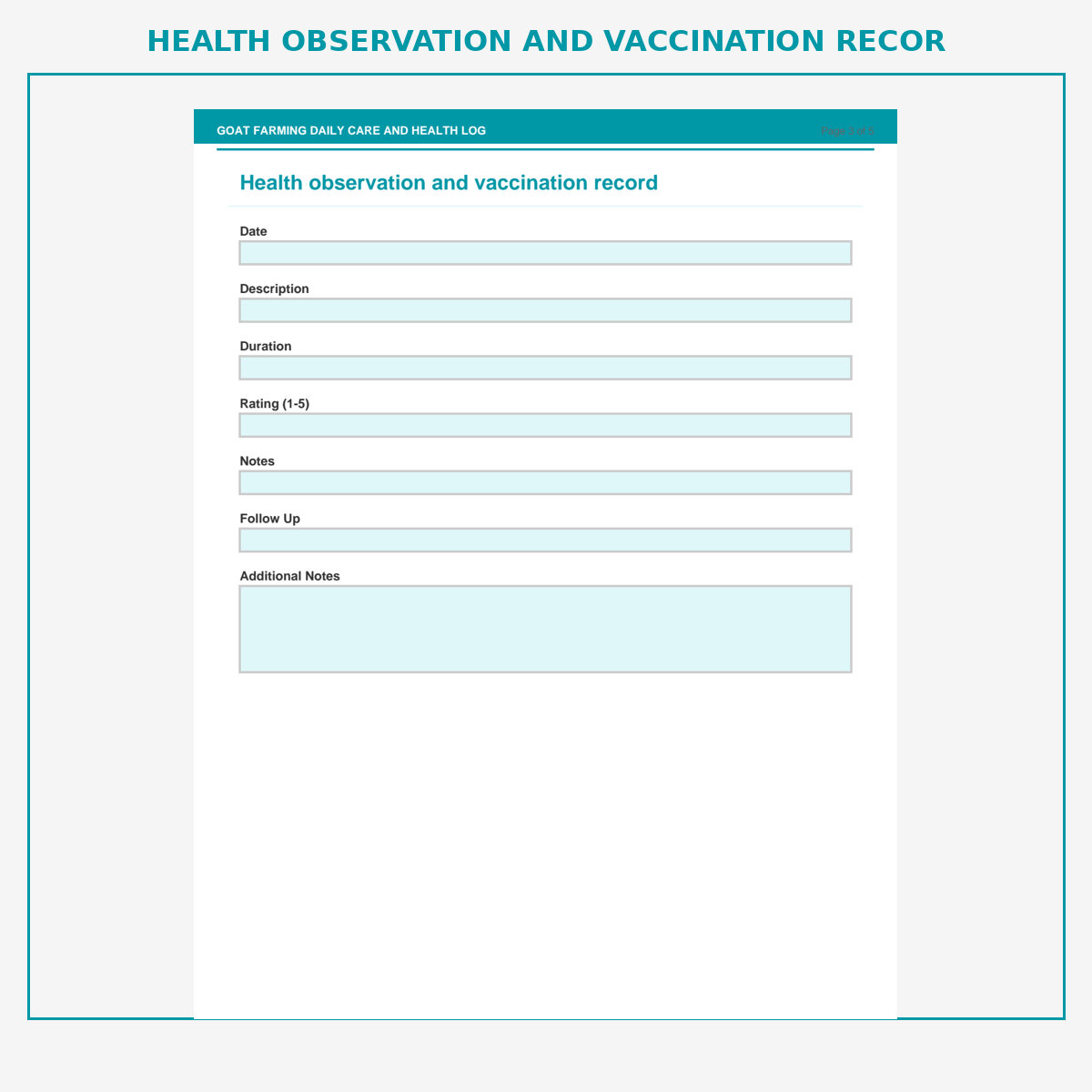 Health observation and vaccination record