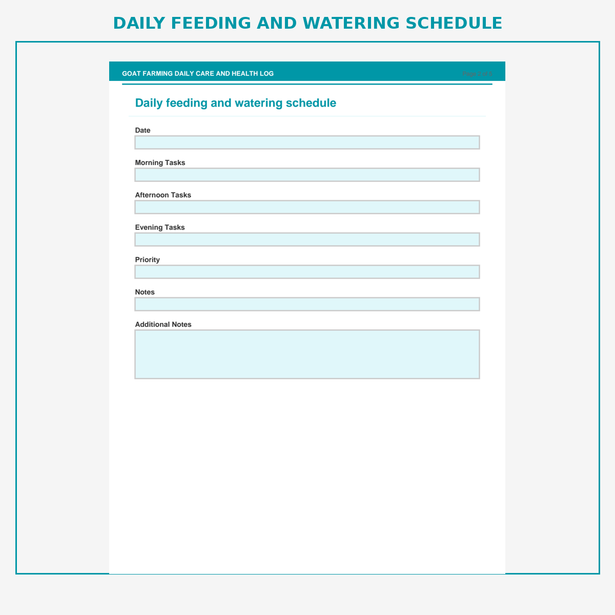 Daily feeding and watering schedule