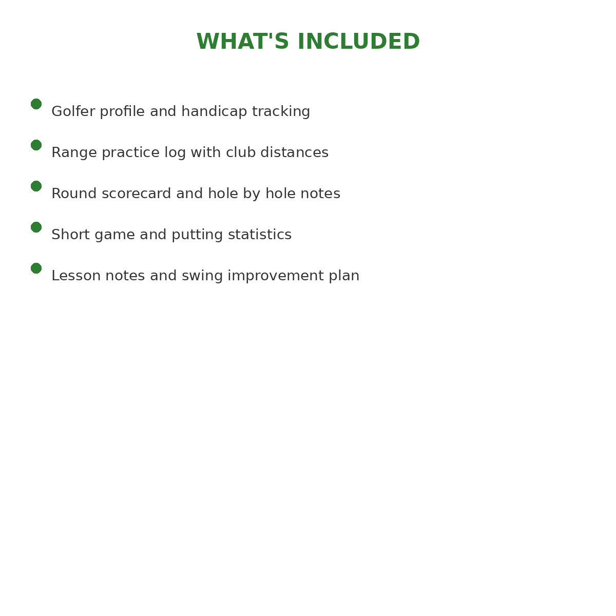 This template was built for Recreational golfers tracking practice sessions and course play. Whether you are just getting started or have been at it for years, having a proper system saves you time and keeps everything in one place. No more scattered notes, forgotten details, or reinventing the wheel every time.