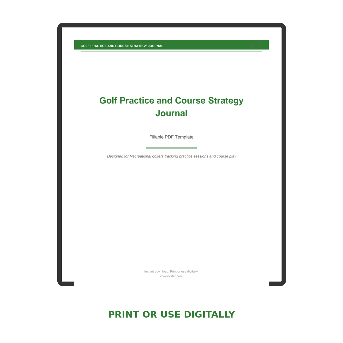 If you have been looking for a golf practice and course strategy journal that actually works the way you need it to, this is it. We designed this 5 page fillable PDF specifically for Recreational golfers tracking practice sessions and course play who want something practical, organized, and ready to use right away.