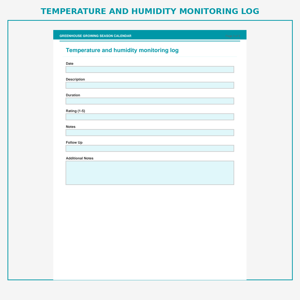 Temperature and humidity monitoring log