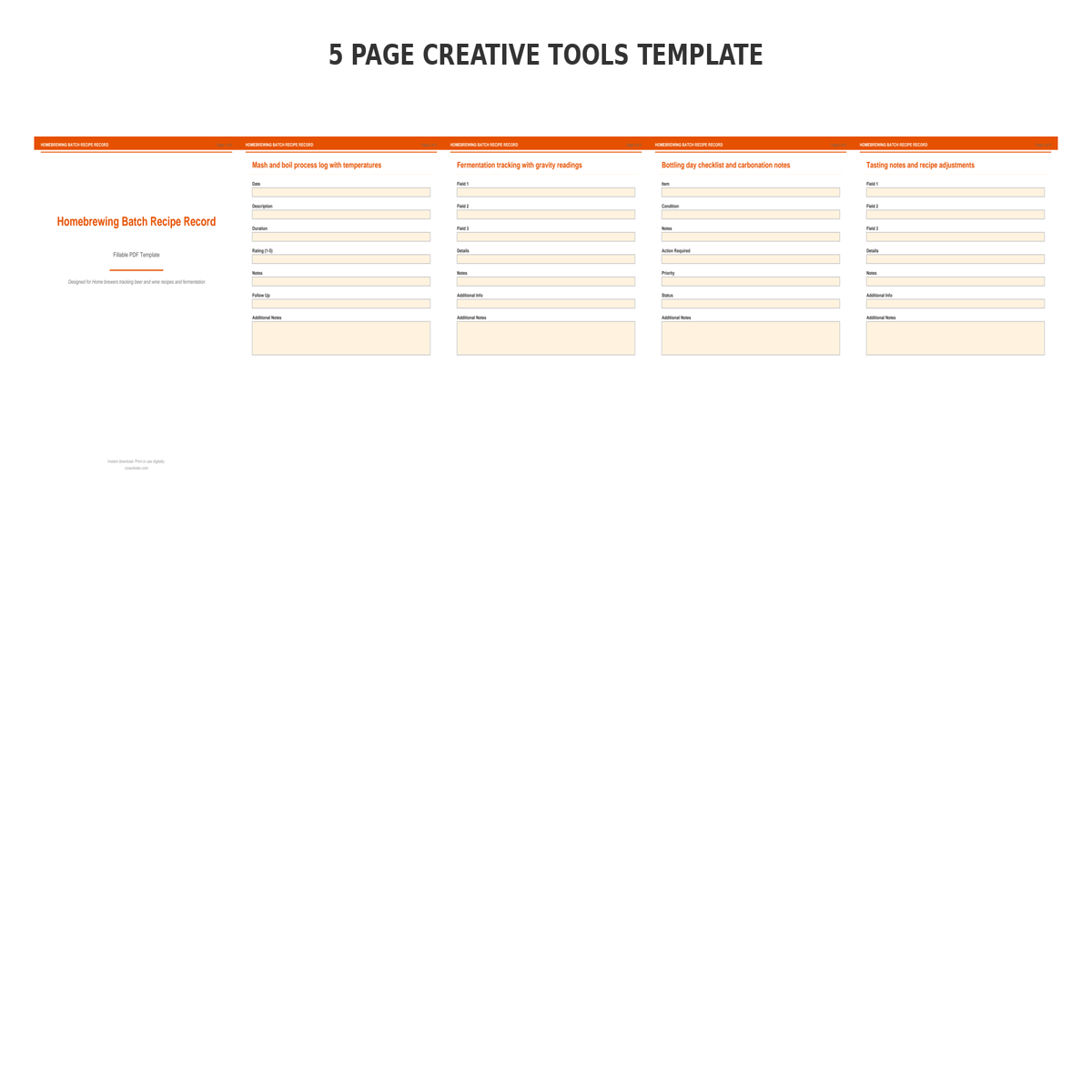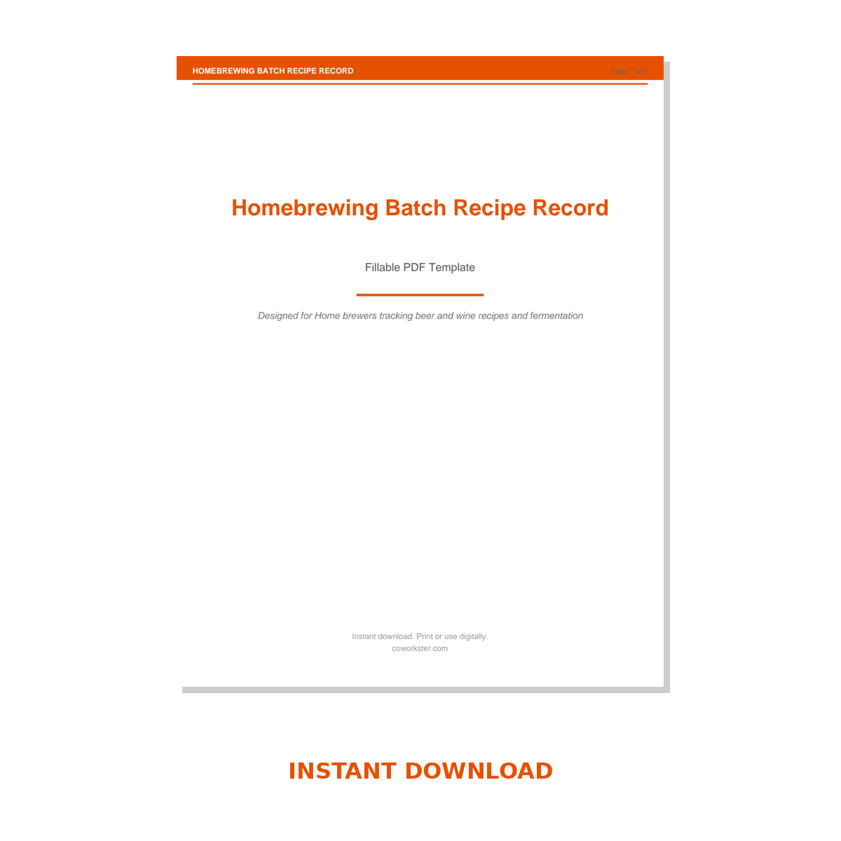 If you have been looking for a homebrewing batch recipe record that actually works the way you need it to, this is it. We designed this 5 page fillable PDF specifically for Home brewers tracking beer and wine recipes and fermentation who want something practical, organized, and ready to use right away.
