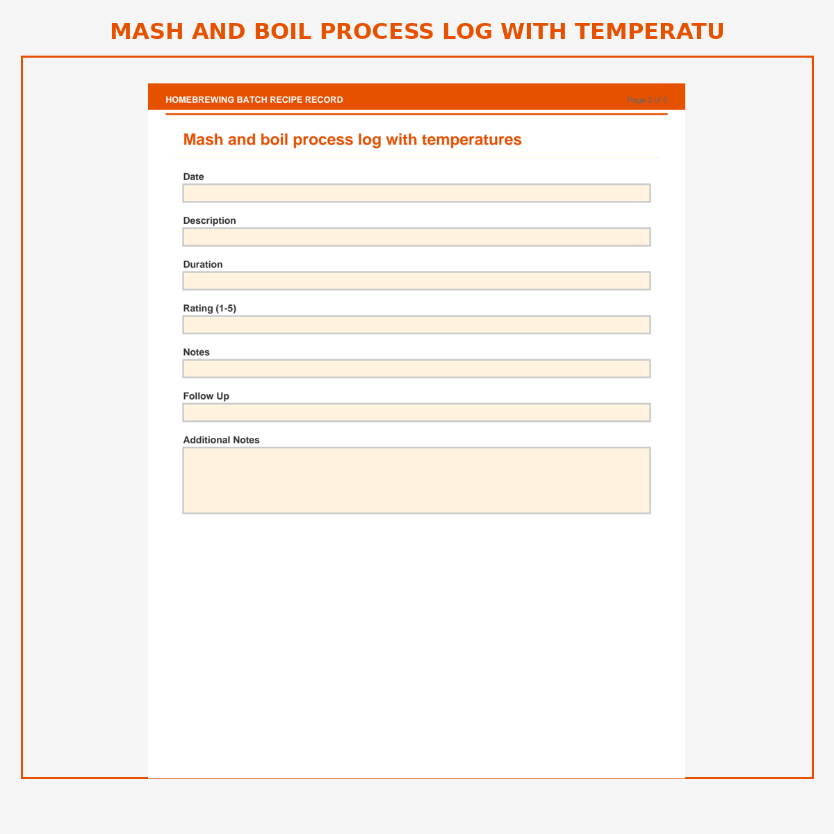 Mash and boil process log with temperatures