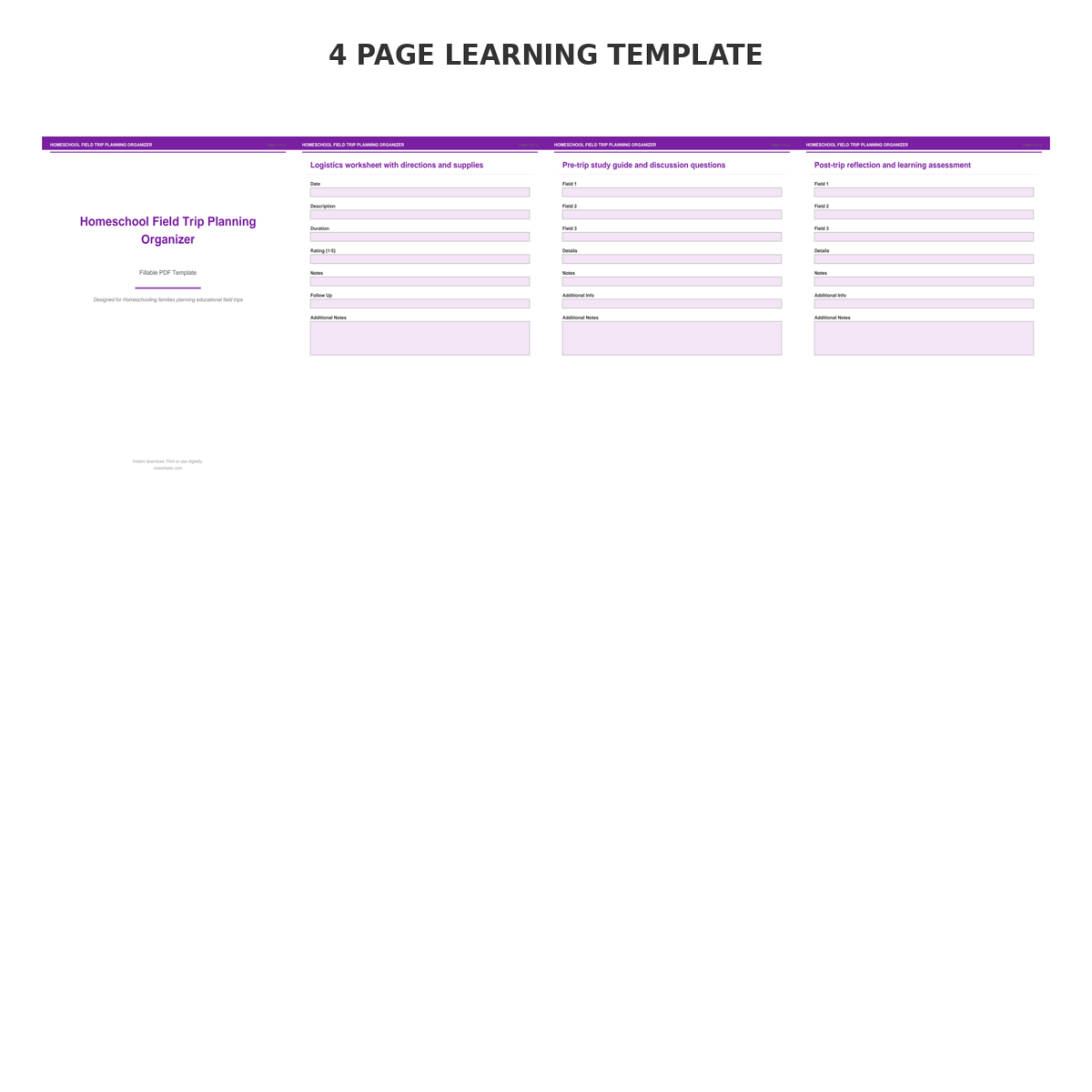 If you have been looking for a homeschool field trip planning organizer that actually works the way you need it to, this is it. We designed this 4 page fillable PDF specifically for Homeschooling families planning educational field trips who want something practical, organized, and ready to use right away.