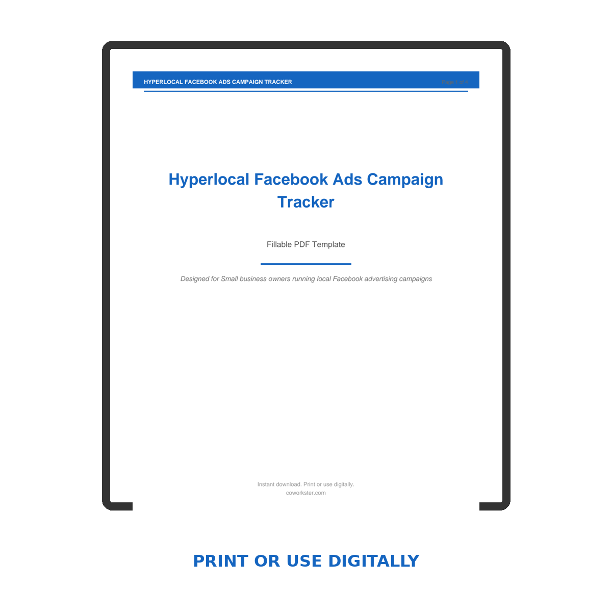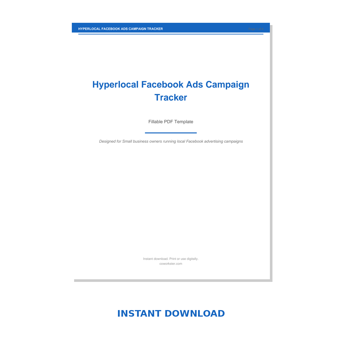 If you have been looking for a hyperlocal facebook ads campaign tracker that actually works the way you need it to, this is it. We designed this 4 page fillable PDF specifically for Small business owners running local Facebook advertising campaigns who want something practical, organized, and ready to use right away.