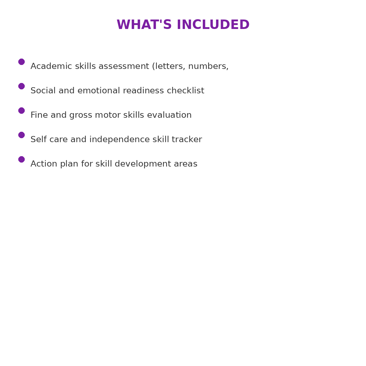 This template was built for Parents evaluating kindergarten readiness skills at home. Whether you are just getting started or have been at it for years, having a proper system saves you time and keeps everything in one place. No more scattered notes, forgotten details, or reinventing the wheel every time.