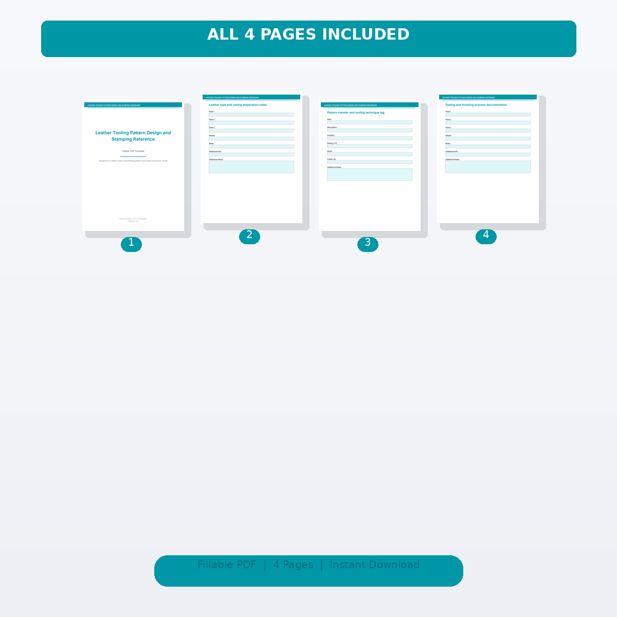 If you have been looking for a leather tooling pattern design and stamping reference that actually works the way you need it to, this is it. We designed this 4 page fillable PDF specifically for Leather toolers documenting patterns and stamp impression results who want something practical, organized, and ready to use right away.