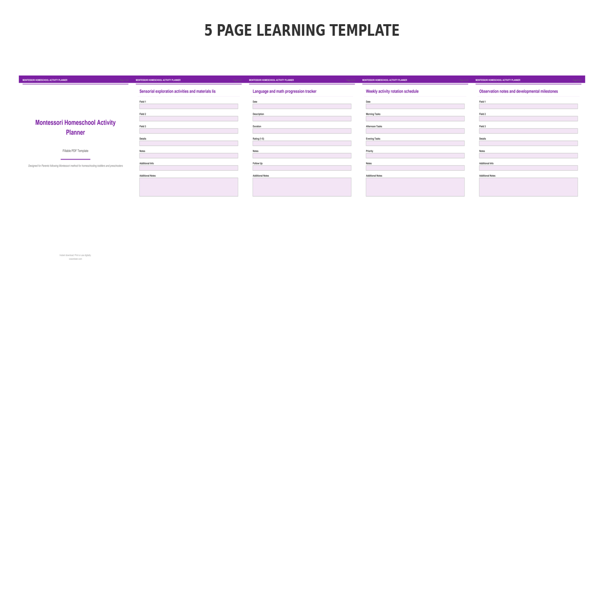 If you have been looking for a montessori homeschool activity planner that actually works the way you need it to, this is it. We designed this 5 page fillable PDF specifically for Parents following Montessori method for homeschooling toddlers and preschoolers who want something practical, organized, and ready to use right away.