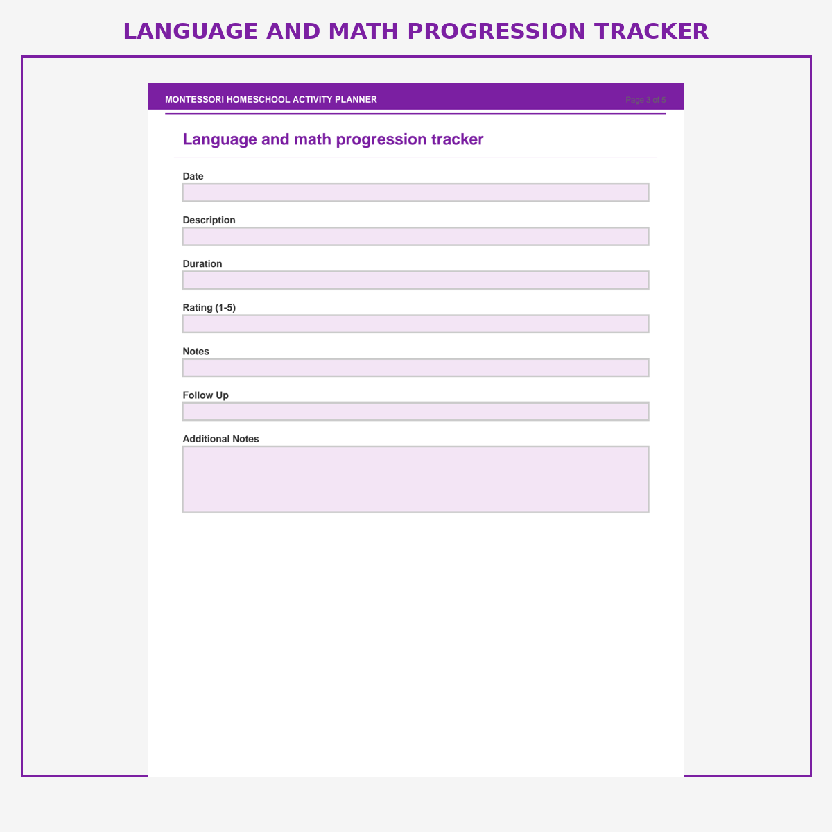 Language and math progression tracker