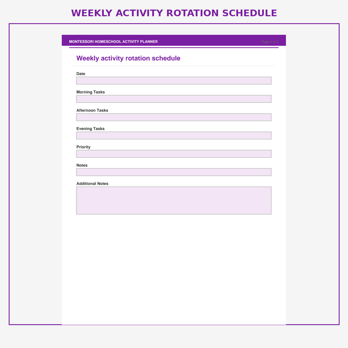 Weekly activity rotation schedule