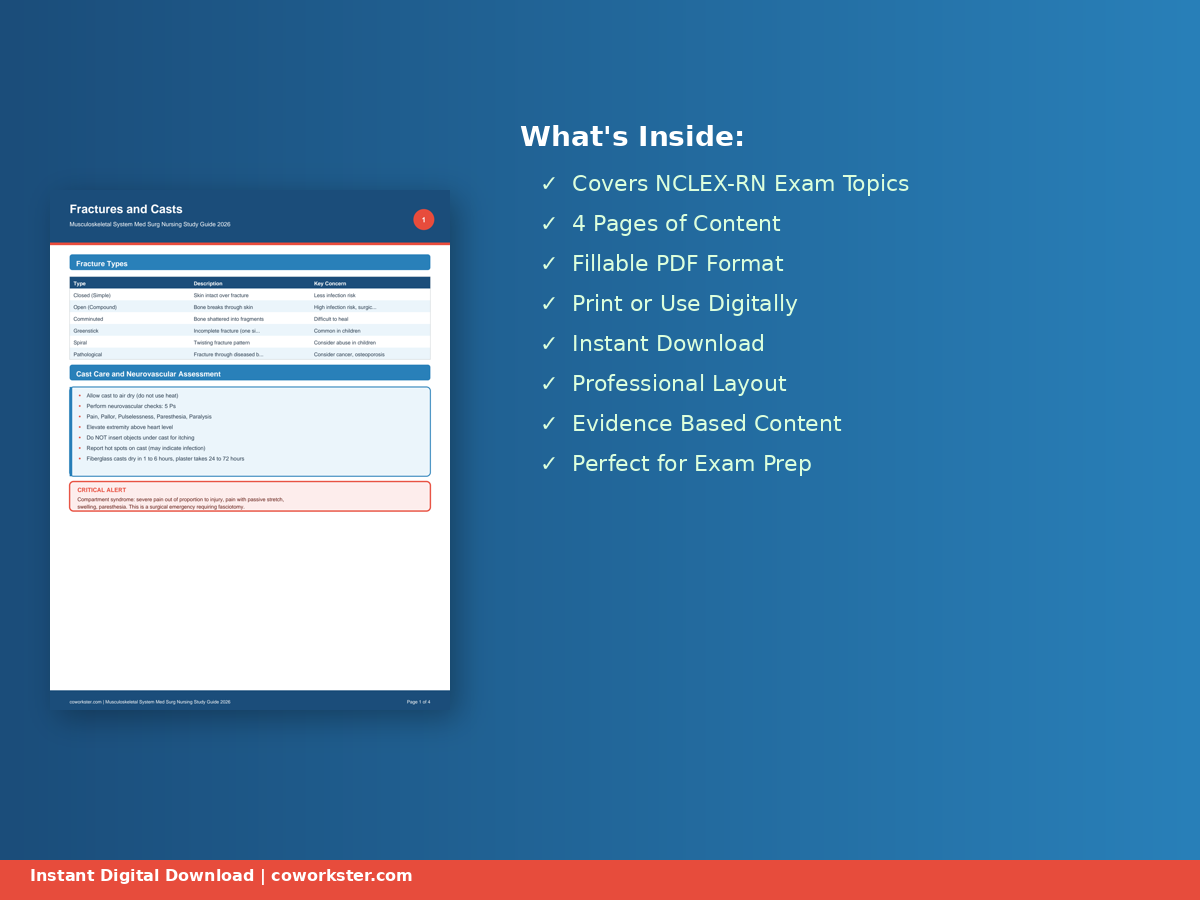 This resource is ideal for nursing students studying musculoskeletal disorders. Use it as your primary study companion, a quick reference during clinical rotations, or a last minute review tool before your exam. It pairs perfectly with your textbooks, lecture notes, and practice questions to give you a well rounded study approach.
