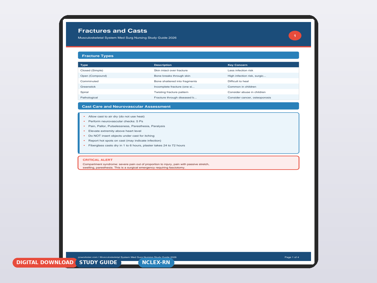 Studying for NCLEX-RN can feel overwhelming, but having the right study materials makes all the difference. This study guide was created specifically for nursing students studying musculoskeletal disorders who want a clear, organized, and comprehensive resource they can actually use. Whether you are reviewing for the first time or doing a final cram session, this 4 page fillable PDF gives you exactly what you need in one place.
