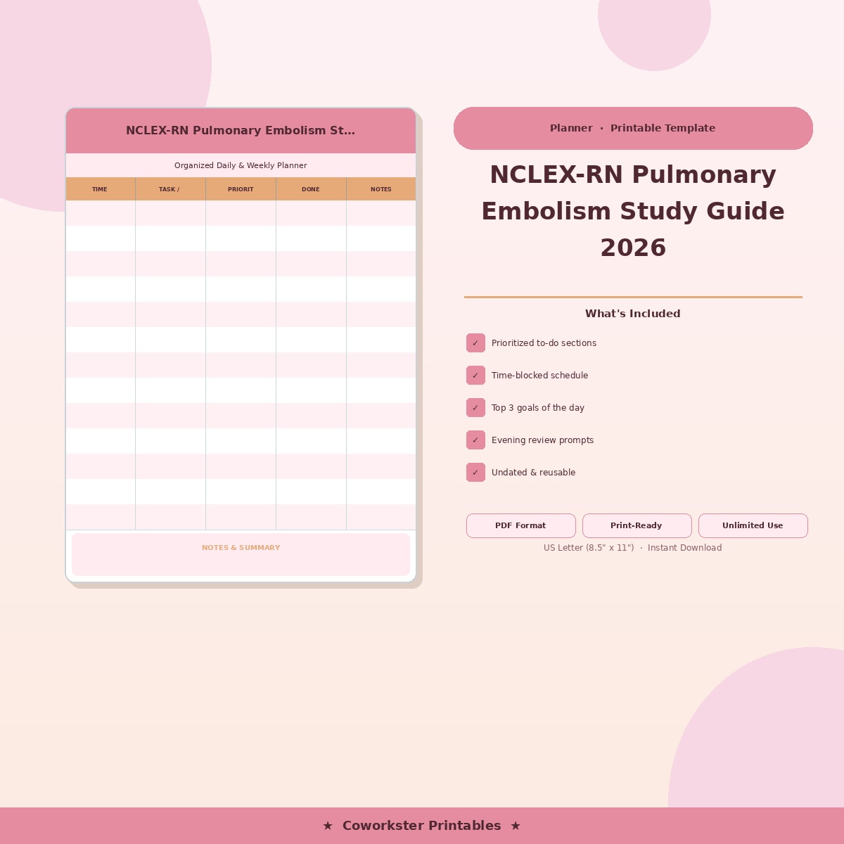 Studying for nclex_rn can feel overwhelming, but having the right study materials makes all the difference. This study_guide was created specifically for Nursing students preparing for NCLEX RN examinations who want a clear, organized, and comprehensive resource they can actually use. Whether you are reviewing for the first time or doing a final cram session, this 7 page fillable PDF gives you exactly what you need in one place.