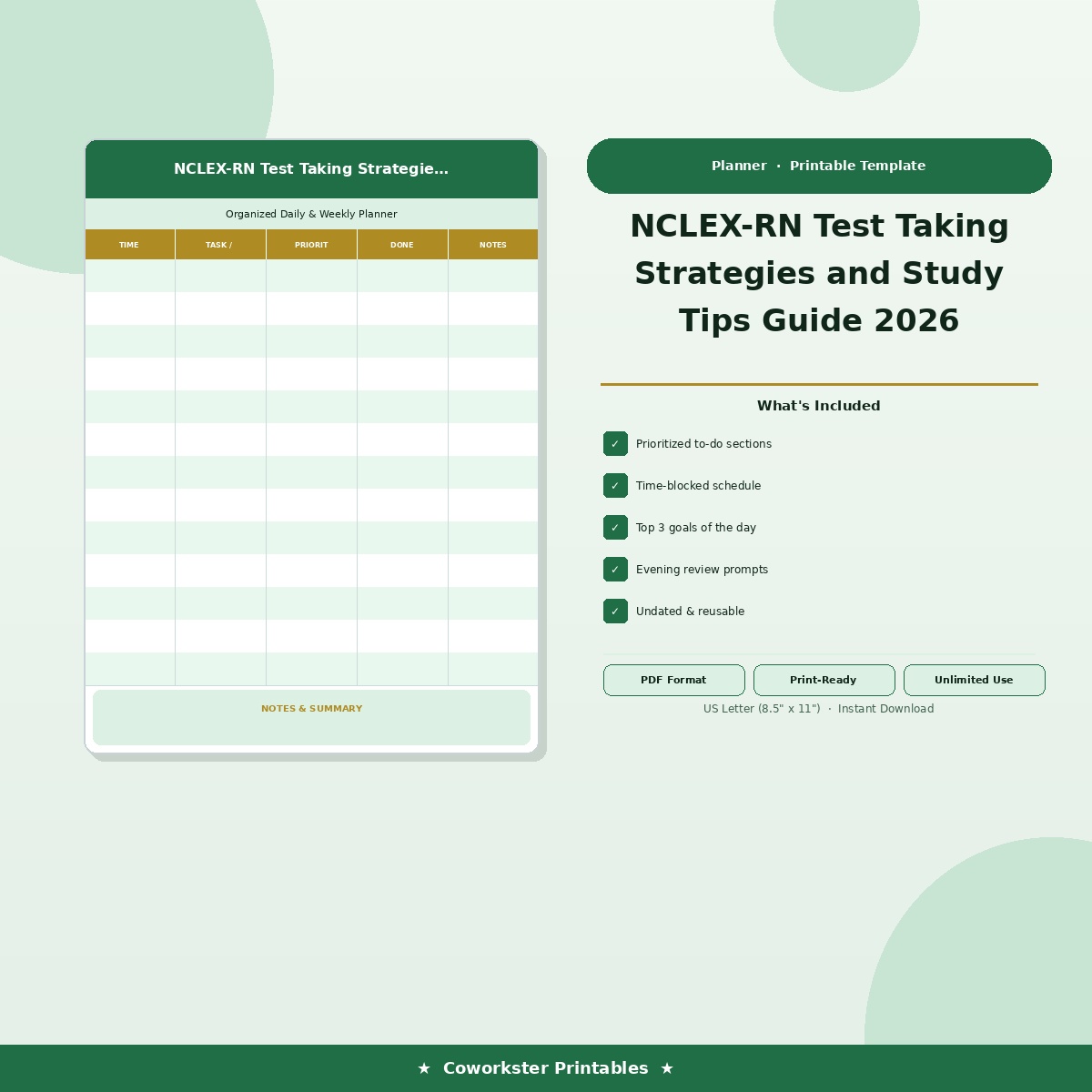 Studying for NCLEX-RN can feel overwhelming, but having the right study materials makes all the difference. This study guide was created specifically for Nursing graduates preparing for NCLEX-RN licensing exam who want a clear, organized, and comprehensive resource they can actually use. Whether you are reviewing for the first time or doing a final cram session, this 21 page fillable PDF gives you exactly what you need in one place.
