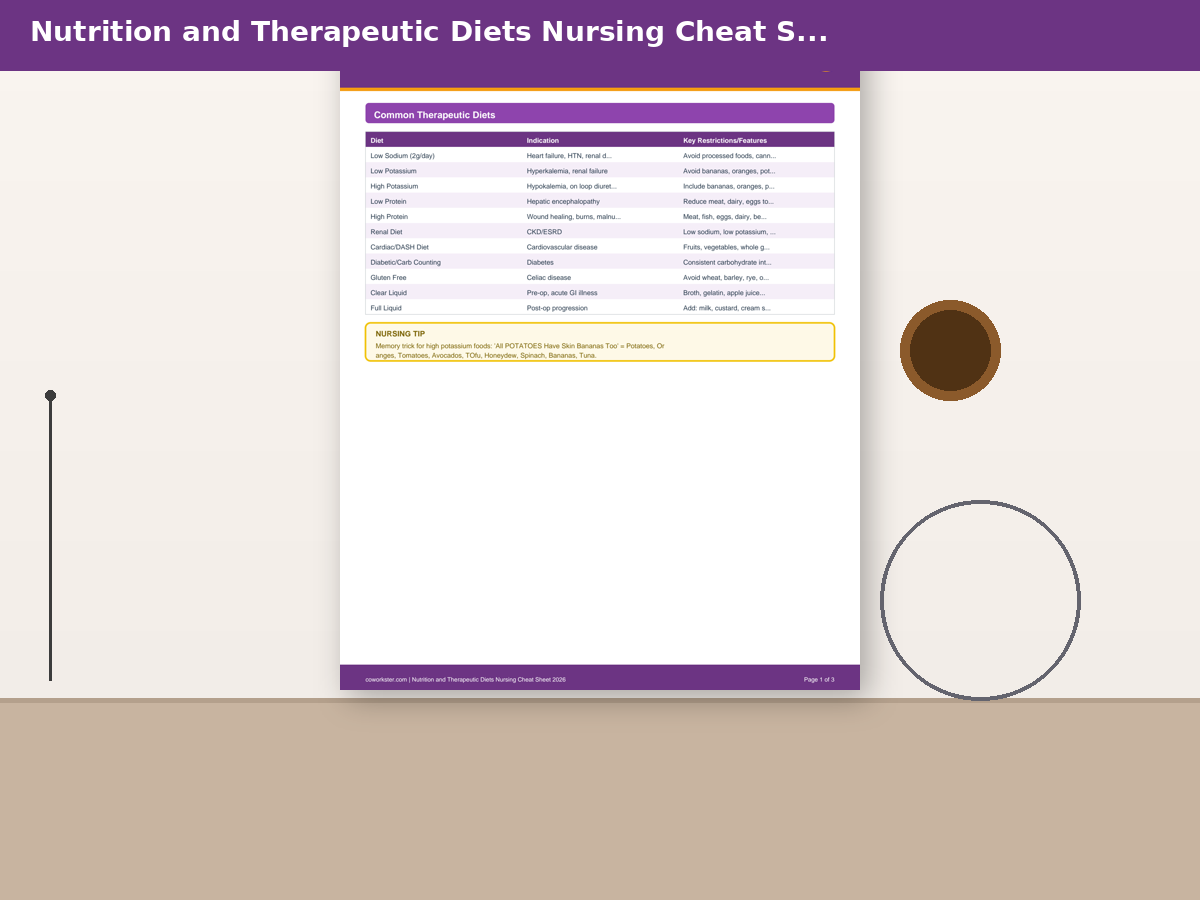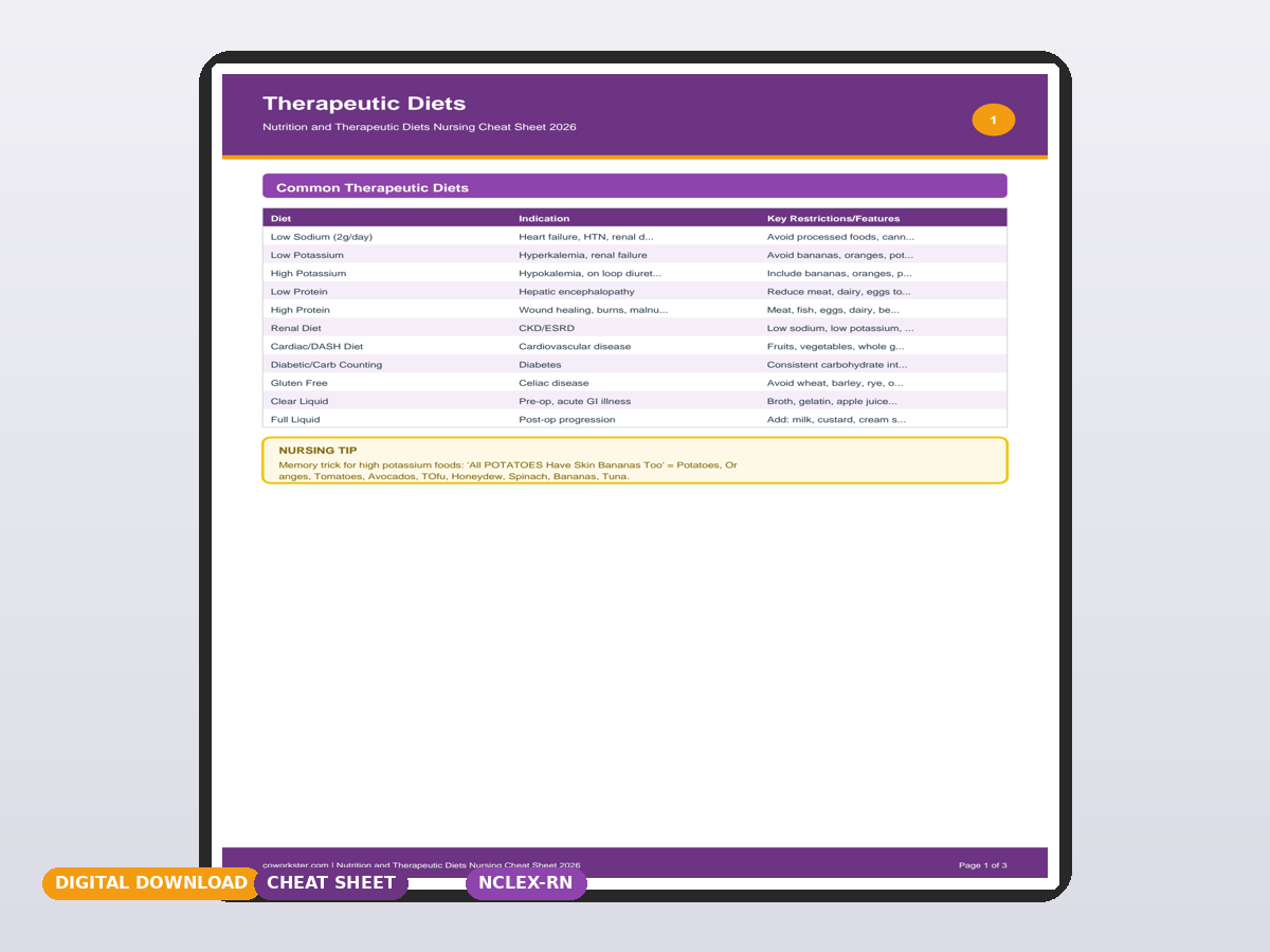 Nutrition and Therapeutic Diets Nursing Cheat Sheet 2026